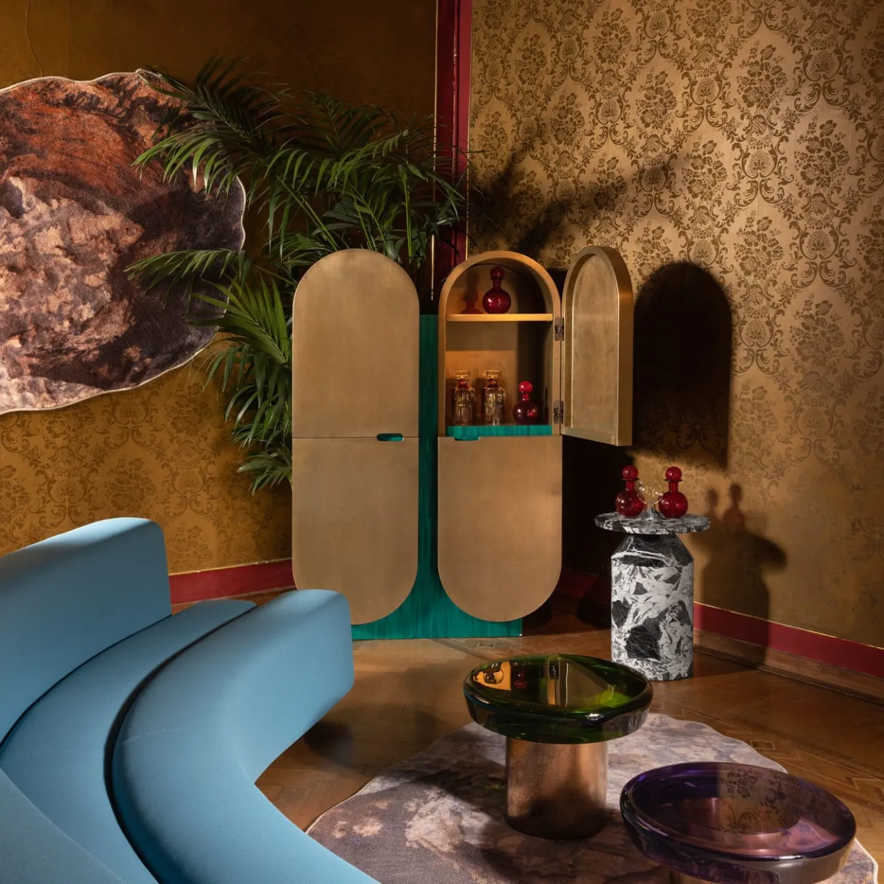 Il tavolino Jade si distingue per la sua eterea trasparenza, grazie alla superficie riflettente che gioca naturalmente con la luce. Il piano dai colori vivaci poggia su una base cilindrica, le cui caratteristiche venature sono ottenute mediante un sapiente trattamento di acidatura dell’ottone. A impreziosire questo pezzo è il contrasto tra le sfumature sempre uniche della resina epossidica – meticolosamente realizzata nel nostro atelier – e gli accenti dorati del metallo. Tutti i piani appartenenti a questa serie sono progettati per essere intercambiabili, consentendo sempre nuove combinazioni. Disponibile in altri colori.