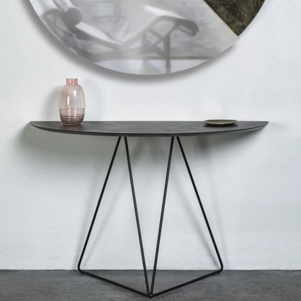 Lama Console Semiellisse Media Con Top In Resina Spatolata Color Dark Brown*Disain 1971 Best