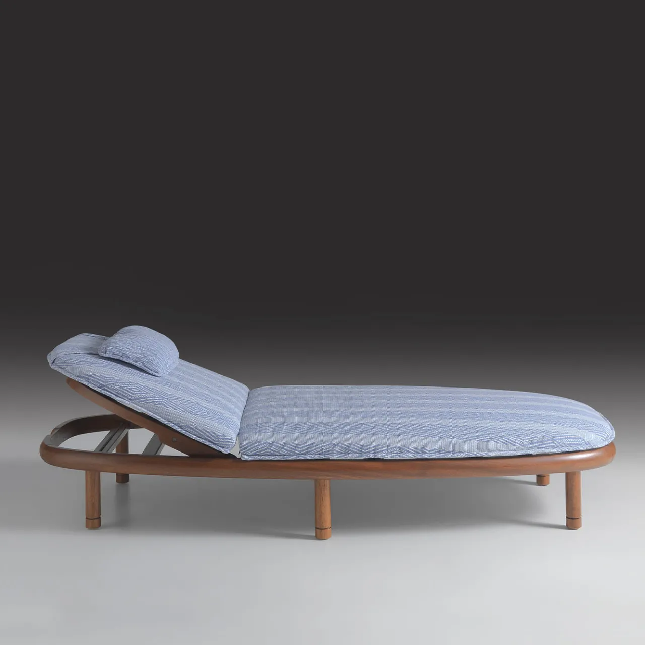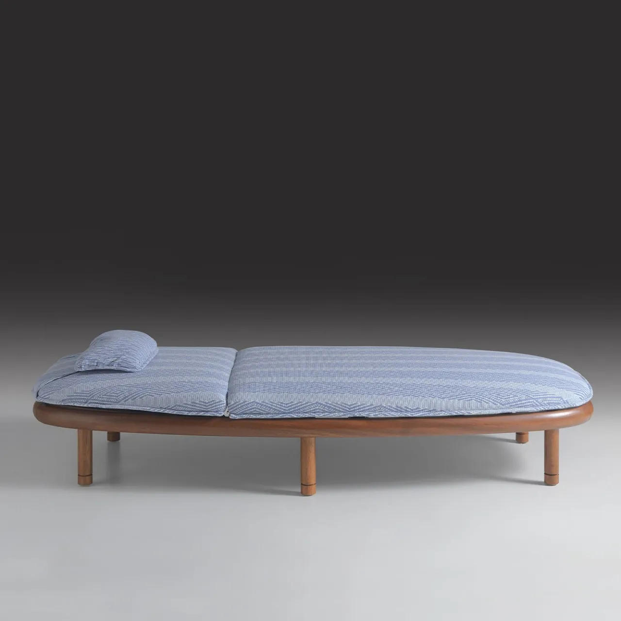 Definito dall’elegante forma ovale e dalla struttura minimalista in legno di Iroko, questo lettino da esterno emana una raffinata semplicità. La finitura chiara mette in risalto le venature naturali del legno, mentre la finitura scura opzionale offre un contrasto drammatico. Rivestito in tessuto PEI Arbonne e con un cuscino in PEI Ascain, unisce materiali durevoli a un comfort lussuoso. Questo lettino si distingue per il suo design senza tempo, che lo rende una scelta sofisticata per qualsiasi ambiente esterno. Per ulteriori dettagli, contattare il Concierge.