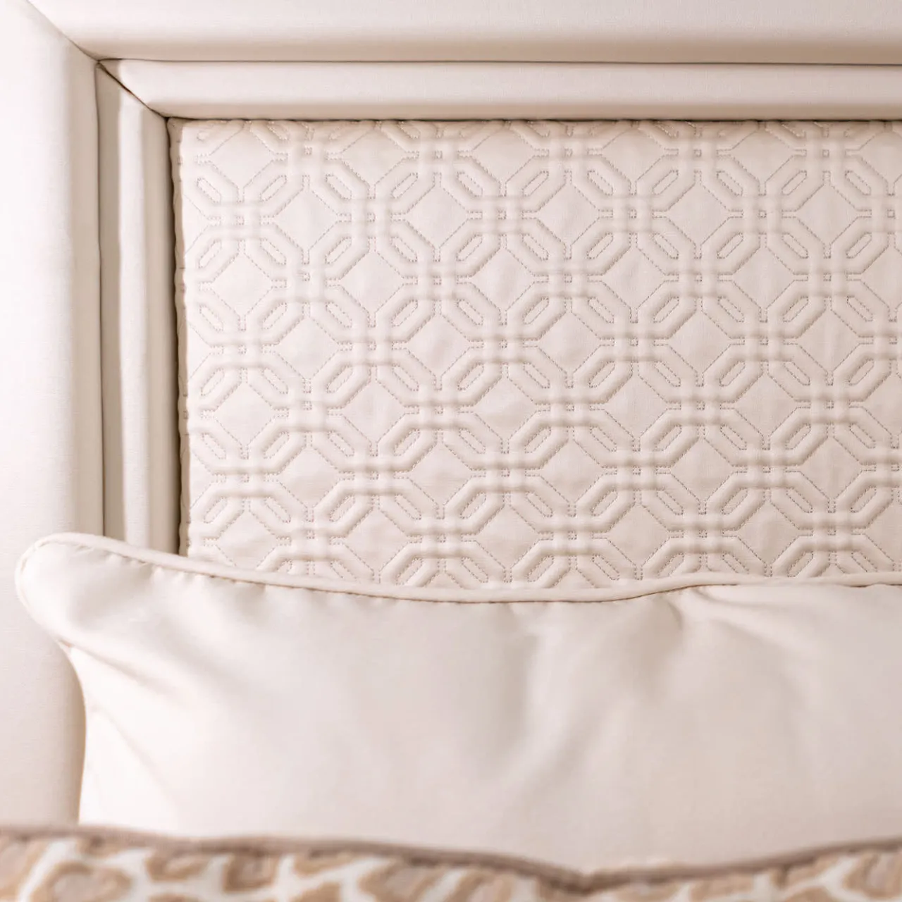 Opulenza e raffinatezza si fondono splendidamente in questo letto matrimoniale, reso straordinariamente romantico dal design a baldacchino. Combinando scintillanti dettagli in bronzo placcato oro 24 carati con vera pelle Nubuck bianca, rivela un inconfondibile fascino sartoriale ulteriormente enfatizzato dal motivo di ottagoni minuziosamente ricamati sul rivestimento in tessuto della testata. Un’aggiunta lussuosa alle camere da letto in stile classico.