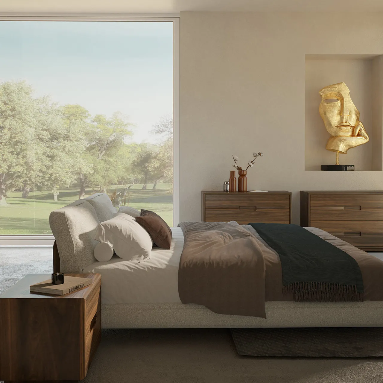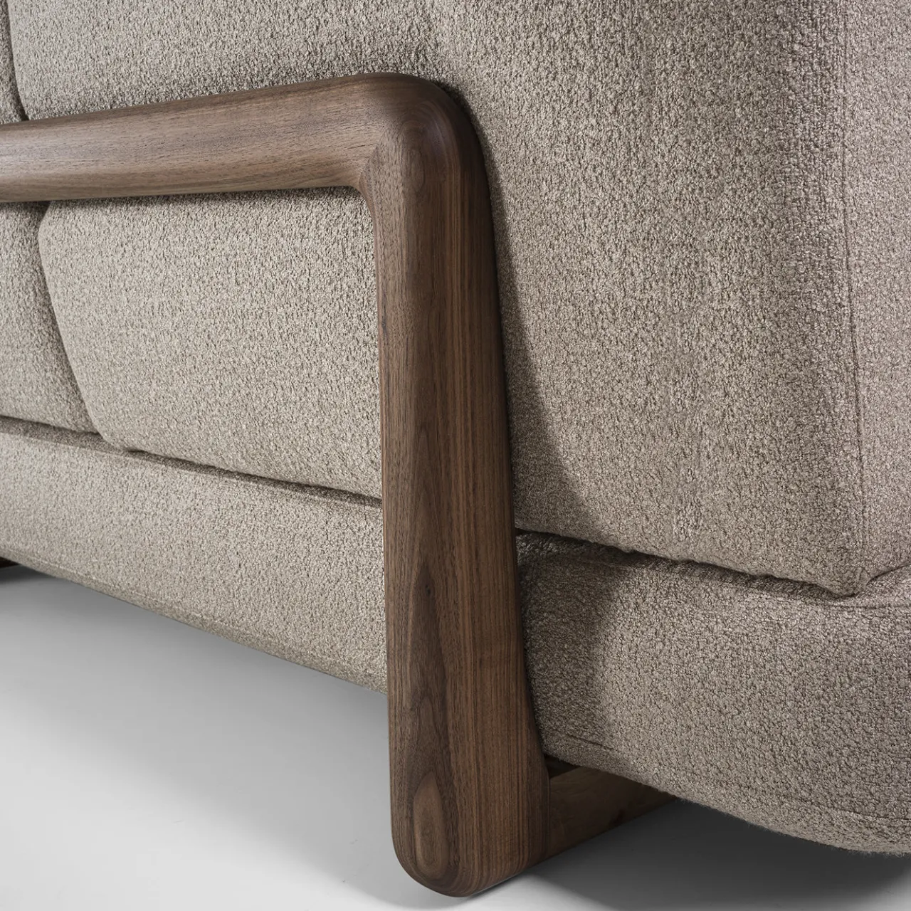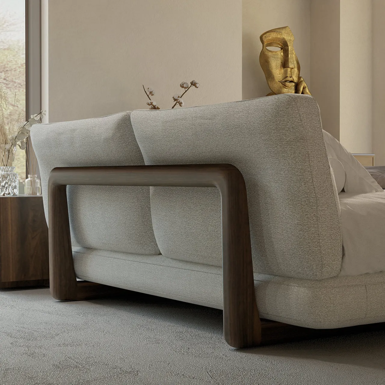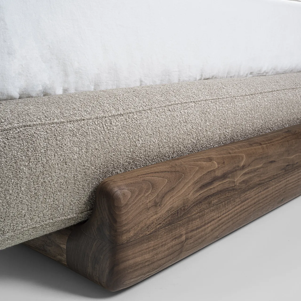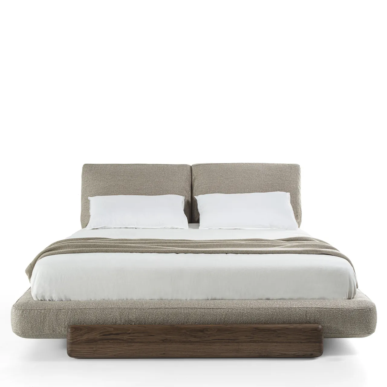 Il letto sospiro presenta una fusione di linee morbide e arrotondate con una solida base in legno di noce e un telaio imbottito e rivestito. La testiera è anch’essa imbottita e rivestita in tessuto bouclé taupe, creando un’armonica mescolanza di texture. Disegnato da Claudio Bellini, questo letto combina elementi in legno naturale con una finitura tessile accogliente per uno spazio notte elegante e contemporaneo. Materasso, cuscini e biancheria da letto non inclusi.