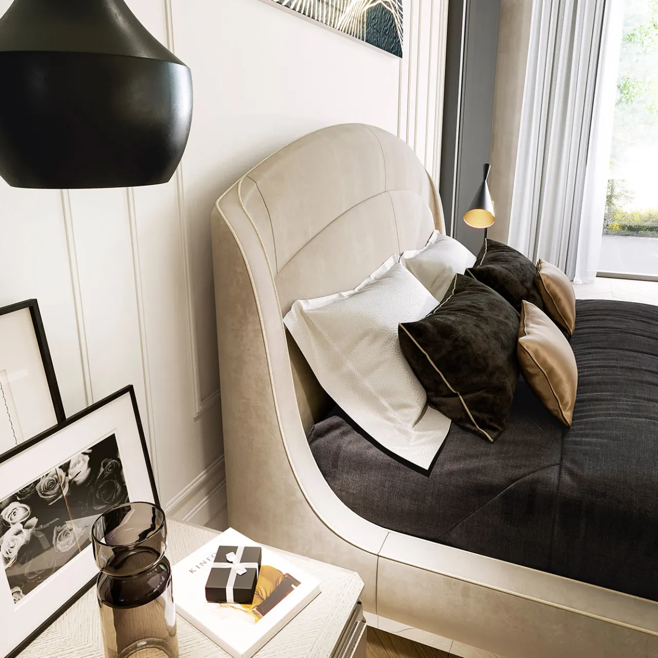 Un design sontuoso ed elegante, definito da linee pulite e semplici, questo splendido letto si distingue per un poggiatesta alto e curvo di grande impatto visivo. Fa parte della Collezione Victor, ed è abbinato al comodino, al vanity e al comò Victor. Realizzato in legno e metallo, è morbidamente imbottito e rivestito in prezioso tessuto avorio. Per ulteriori informazioni, contattare il Concierge. Il prezzo si riferisce solo alla struttura del letto (materasso, cuscini e coperte non sono inclusi).