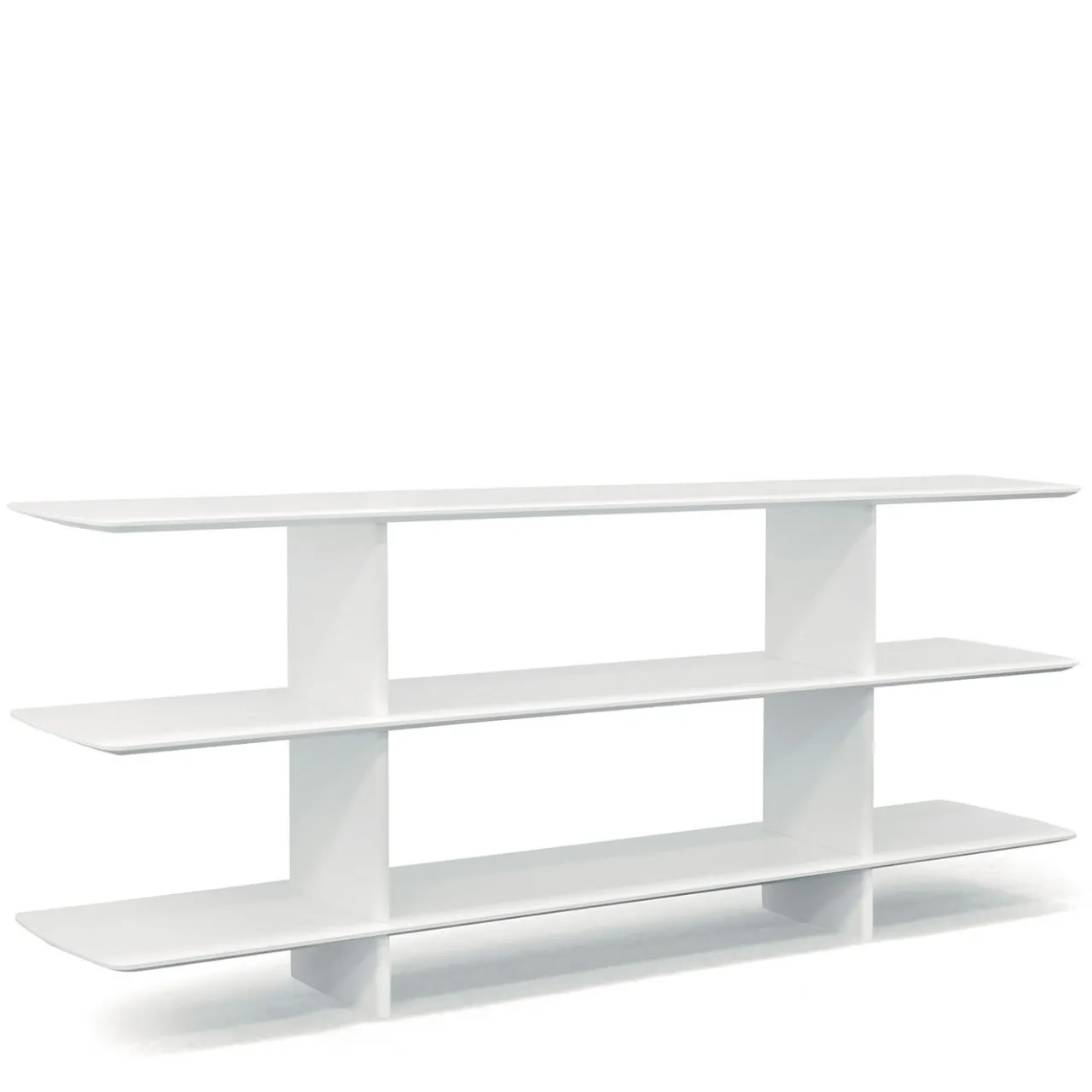 Caratterizzata da linee morbide e fluide, questa luminosa libreria colpisce per il suo design arioso capace di armonizzarsi in qualsiasi contesto contemporaneo o eclettico. Tre ripiani in legno laccato bianco, sostenuti da una struttura in alluminio coordinata, offrono ampio spazio per riporre libri o esporre fotografie di momenti indimenticabili. La base di appoggio è realizzata in Cristalplant®, un materiale resistente ma morbido, adatto a una vita sostenibile. Sono disponibili altre varianti, consultare il Concierge per i dettagli.