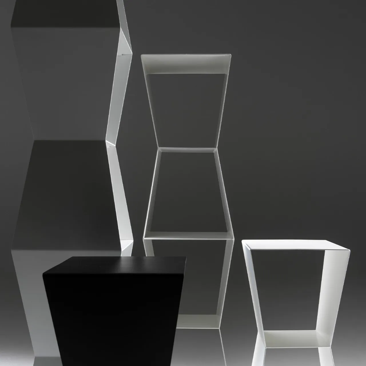 Dinamica e seducente nella sua forma pulita e minimalista composta da sei ripiani, questa libreria autoportante appartiene a una serie di progetti essenziali di ispirazione urbana di Carlo Cumini. Interamente realizzata in alluminio laccato bianco, animerà con discrezione un salotto o uno studio di ispirazione contemporanea.