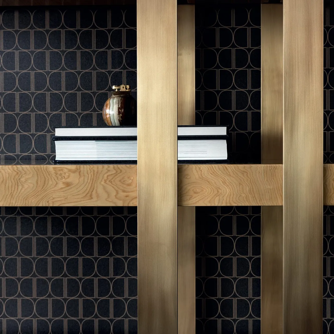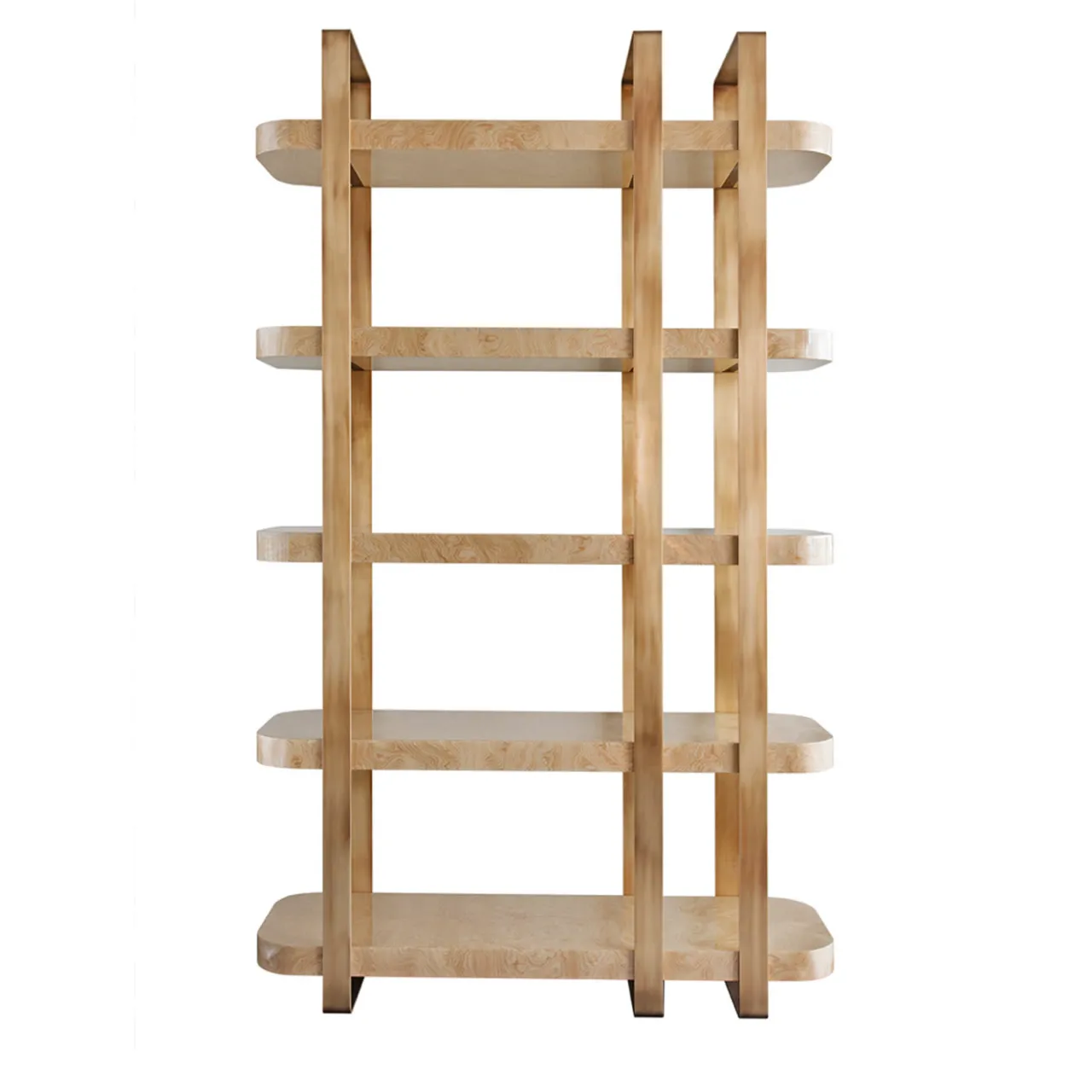 La libreria Babel è un elemento di grande impatto, con i suoi ripiani a nucleo cavo in finitura lucida spazzolata e la struttura in ottone con finitura in ottone brunito. Offrendo ampio spazio per i vostri preziosi libri e soprammobili, gli scaffali completeranno l’arredamento di qualsiasi casa in stile contemporaneo. La foto presenta una finitura lucida di mirto.