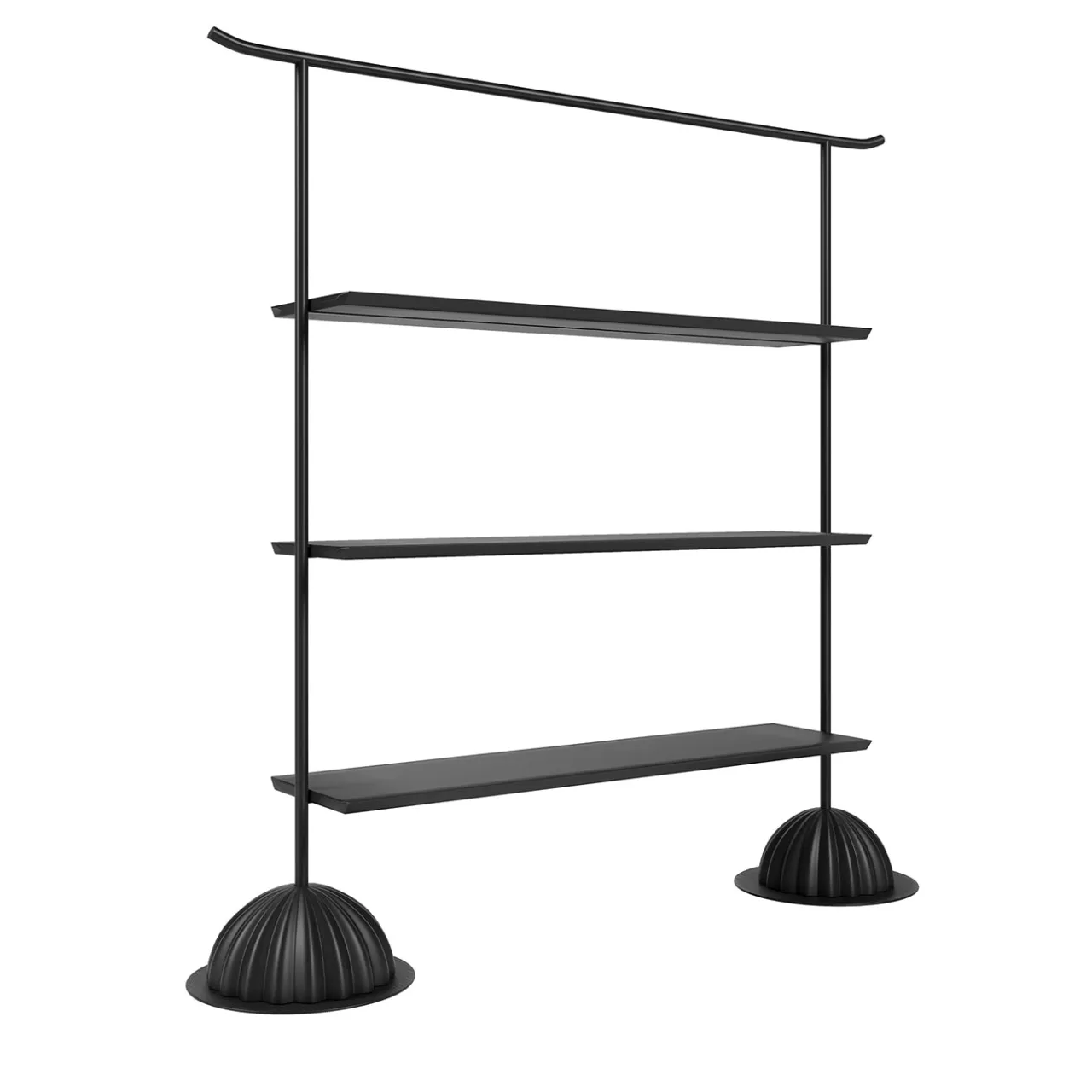 La libreria Kimono presenta tre ampi ripiani sostenuti da sottili montanti verticali. La sua struttura minimalista è valorizzata da distintive basi a cupola con motivo scanalato, creando una presenza audace ma raffinata. La barra superiore si curva delicatamente verso l’esterno, aggiungendo un sottile dettaglio architettonico che completa le linee pulite. Questo pezzo unisce funzionalità e stile contemporaneo, rendendolo adatto a diversi ambienti interni.
