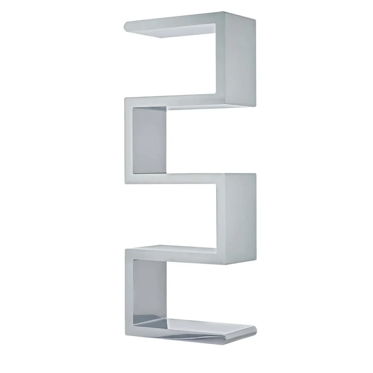 Questa libreria contemporanea è stata disegnata da Giancarlo Pretazzoli. È interamente realizzata in acciaio inox con una lucente finitura a specchio che conferisce dinamismo al rigore geometrico della silhouette a zig-zag.