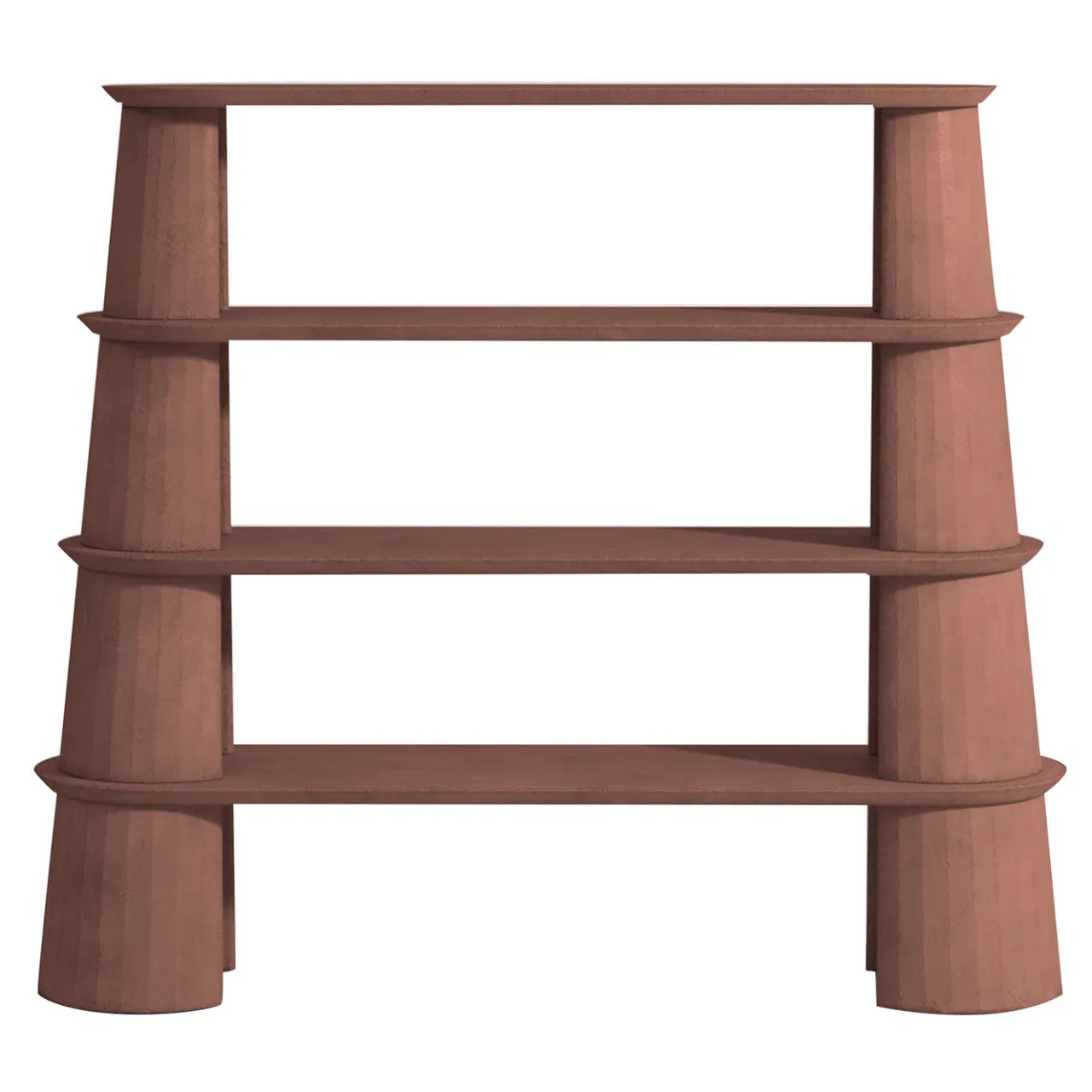 Un pezzo notevole di arredamento funzionale, questa libreria vanta un design modulare composto da due alte colonne che sostengono quattro ripiani. Leggera e robusta, è realizzata in cemento sabbiato ad alte prestazioni in una tonalità rosso mattone. Trattato a mano con prodotti idrorepellenti per evitare che si macchi. Questo pezzo è disponibile in altre otto tonalità su richiesta al Concierge.