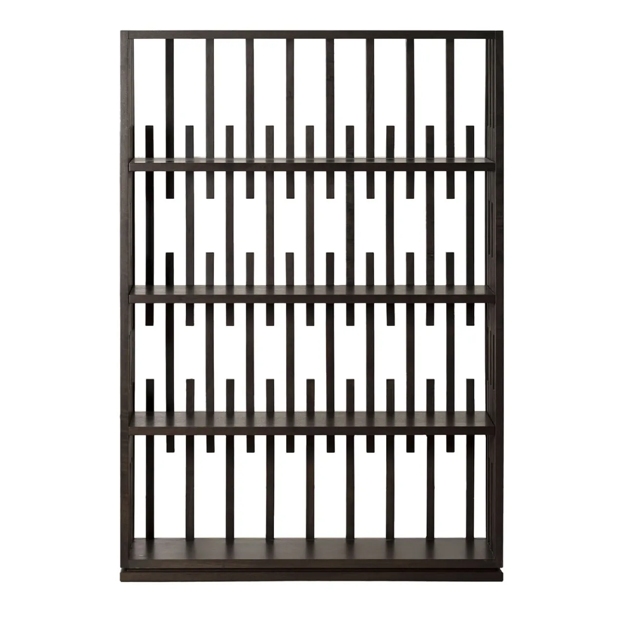 Questa libreria è realizzata in legno massello di noce canaletto scuro, offrendo un aspetto ricco e lussuoso. Il design robusto e le profonde tonalità del legno la rendono un pezzo senza tempo, perfetto per esporre libri o oggetti decorativi in qualsiasi interno moderno o classico.