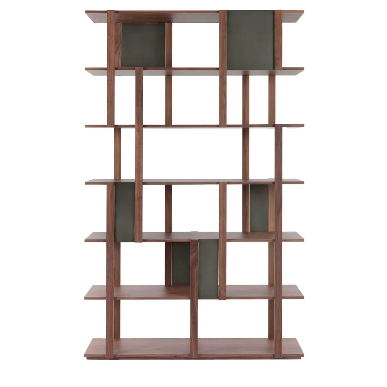 In questa libreria bifacciale indipendente e modulare, l’essenza del legno incontra l’eleganza dei dettagli metallici che impreziosiscono la struttura e i ripiani impiallacciati in noce canaletto. Su richiesta, può essere arricchita con l’aggiunta di inserti metallici verniciati nei toni del titanio, del bronzo o dell’ottone patinato, creando un’affascinante alternanza di pieni e vuoti. Posizionatelo al centro della stanza, come divisorio aperto, o appoggiatelo a una parete. Consultare il Concierge per le opzioni di personalizzazione.