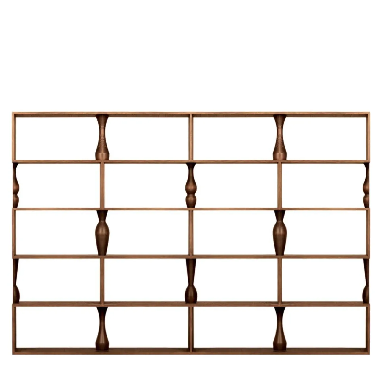 Questo originale pezzo in frassino mira a creare un sorprendente effetto decorativo grazie alla giustapposizione dei moduli della libreria Perbacco a 1 pezzo. Gli elementi a mezza colonna, posti ai lati dei ripiani, si uniscono nei tre pannelli verticali centrali per assomigliare a oggetti decorativi. Questo particolare design conferisce alla libreria un fascino intrigante anche quando è spoglia. Disegnata da Itamar Harari.