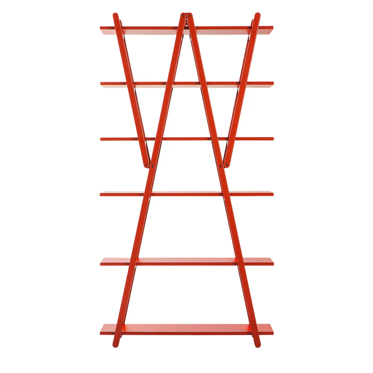 Disegnata da Vico Magistretti, questa libreria dalle linee semplici e pulite nasce da un’analisi dettagliata del modello classico con supporti laterali e ripiani. I puntoni diagonali diventano la struttura portante e ospitano i ripiani, eliminando la necessità di supporti laterali. Ponendo l’accento sulle cerniere e sui sei ripiani, la struttura, che può essere ripiegata, può essere utilizzata anche come divisorio.
