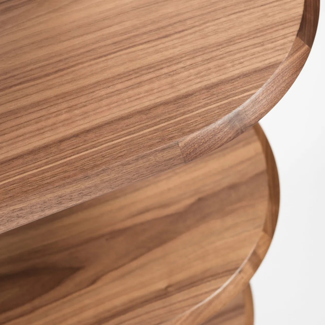 Fresco e suggestivo, il design di questa libreria in noce canaletto si ispira ai pontili dove le barche aspettano con calma la prossima avventura. Sei ripiani orizzontali con estremità arrotondate sono attraversati da fusti verticali con punte superiori laccate in azzurro brillante con una vernice protettiva. Due unità chiuse da un sistema a persiana completano il vano portaoggetti creando anche un armonioso equilibrio di pieni e vuoti. Chiedete al Concierge per la personalizzazione e i prezzi.