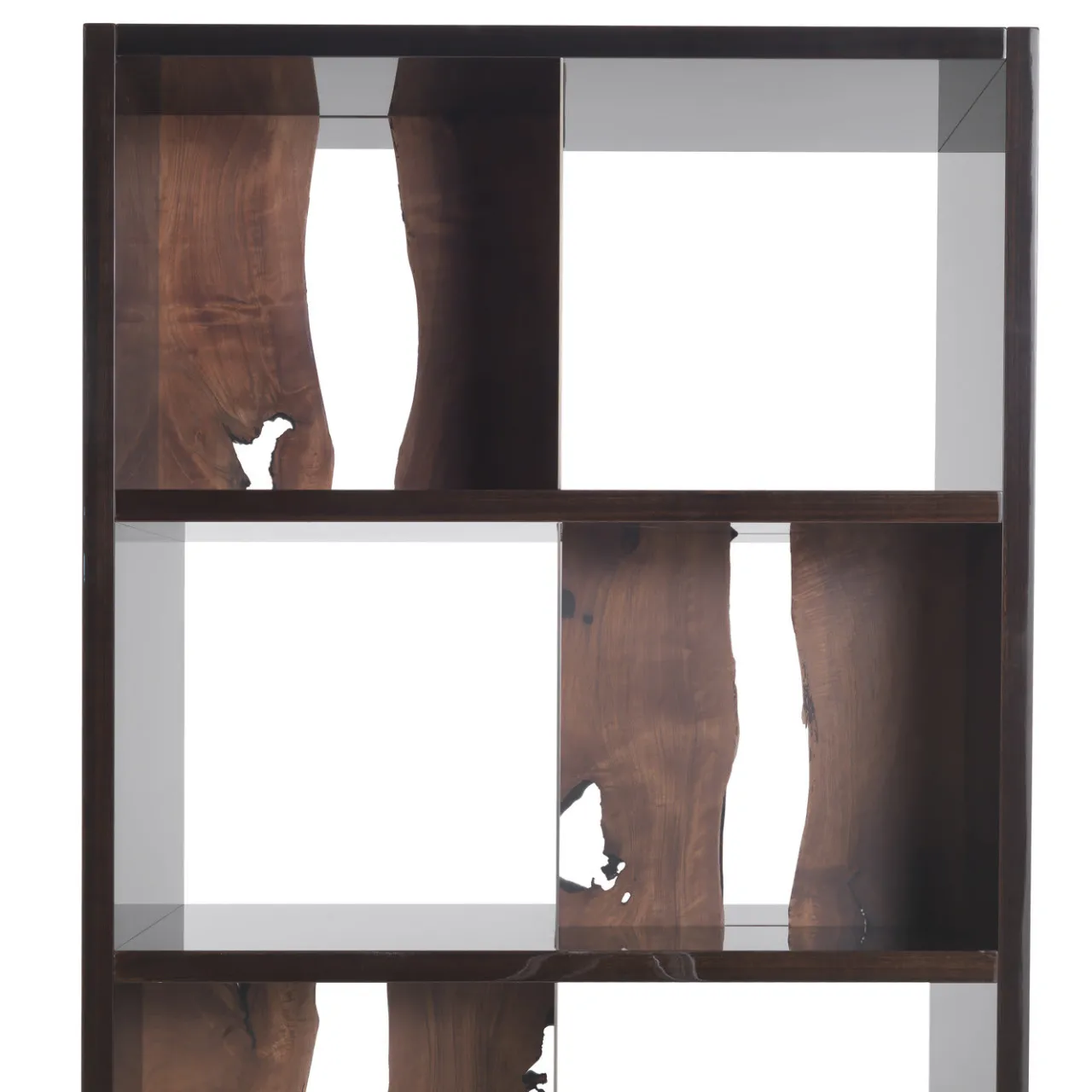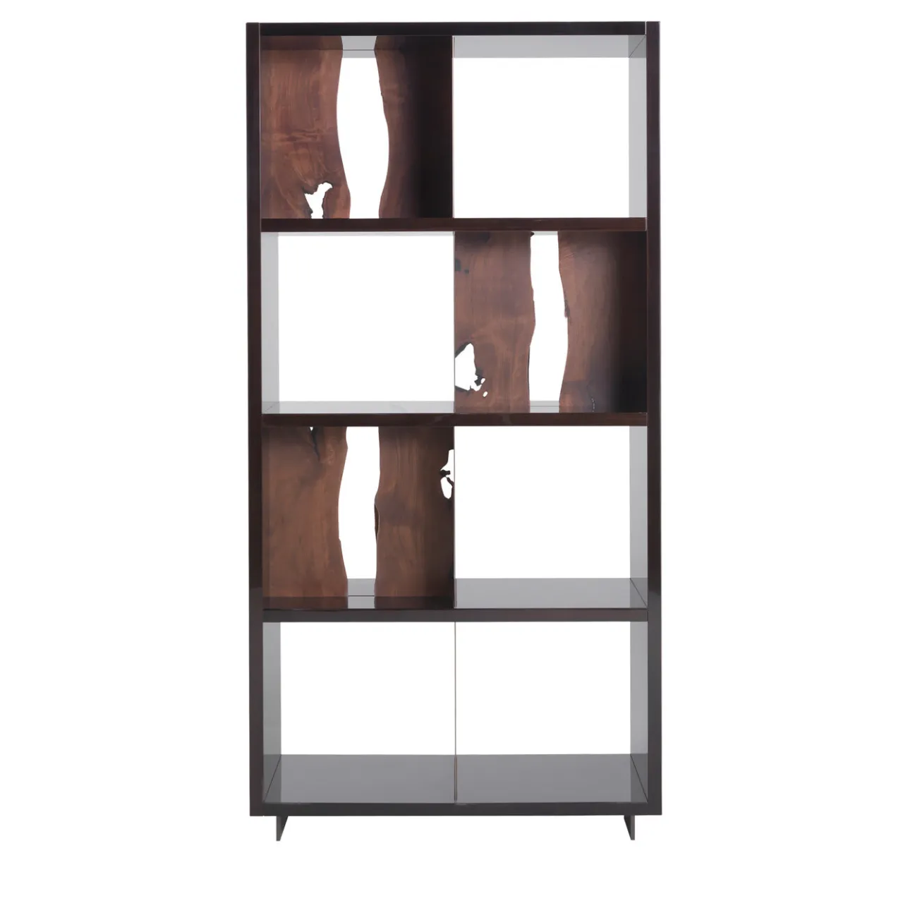 Un pezzo d’arredamento funzionale che infonde raffinatezza a qualsiasi salotto, questa splendida libreria è il risultato di una sapiente lavorazione artigianale unita a un design moderno. Realizzata in legno di eucalipto, è composta da quattro ripiani suddivisi in scomparti grazie a divisori in metallo e resina. Il pezzo è arricchito da dettagli in ottone spazzolato. Per maggiori informazioni, rivolgersi al Concierge.
