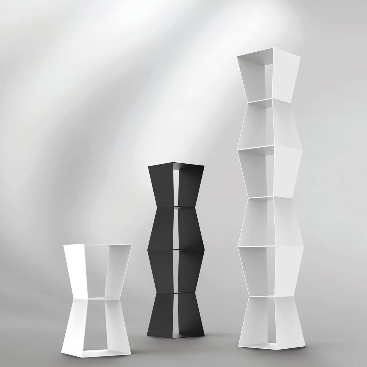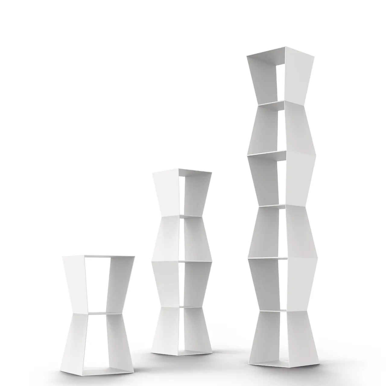 Splendido pezzo dal fascino minimalista, questa libreria vanta una struttura autoportante con un telaio resistente. Caratterizzati da una forma geometrica unica, i sei ripiani sono realizzati in metallo e rifiniti con una laccatura bianca, per un’estetica dinamica.