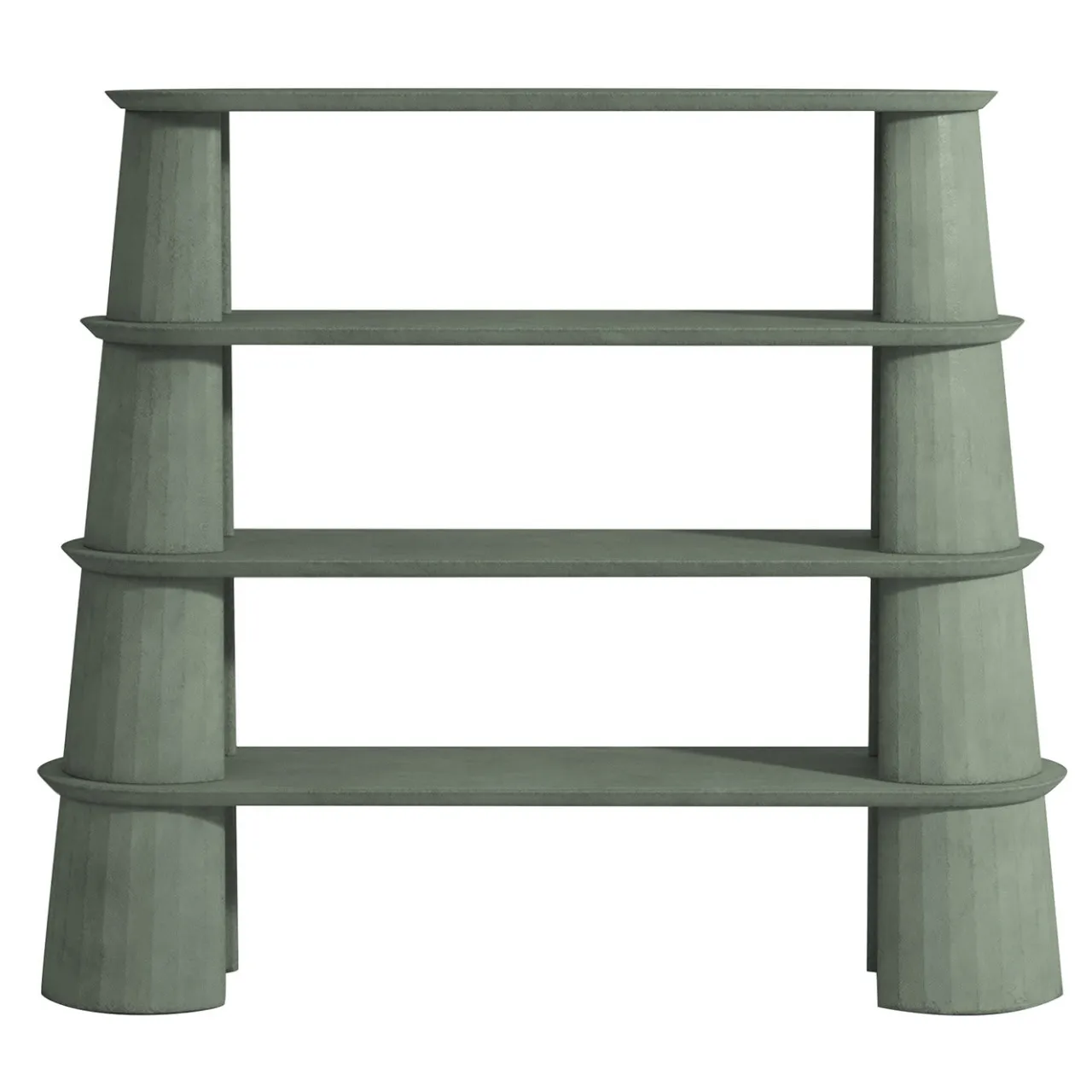 Questa raffinata libreria fa parte di una singolare serie di pezzi modulari, interamente realizzati in cemento sabbiato ad altissime prestazioni, trattato a mano con prodotti idrorepellenti. Caratterizzata da linee pulite ed essenziali che conferiscono una qualità più leggera a questo materiale duro, presenta due alte colonne laterali che sostengono quattro ripiani. Di colore verde abete, è disponibile su richiesta in altre otto tonalità.
