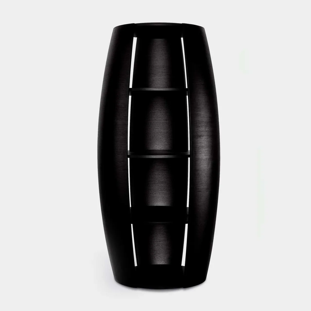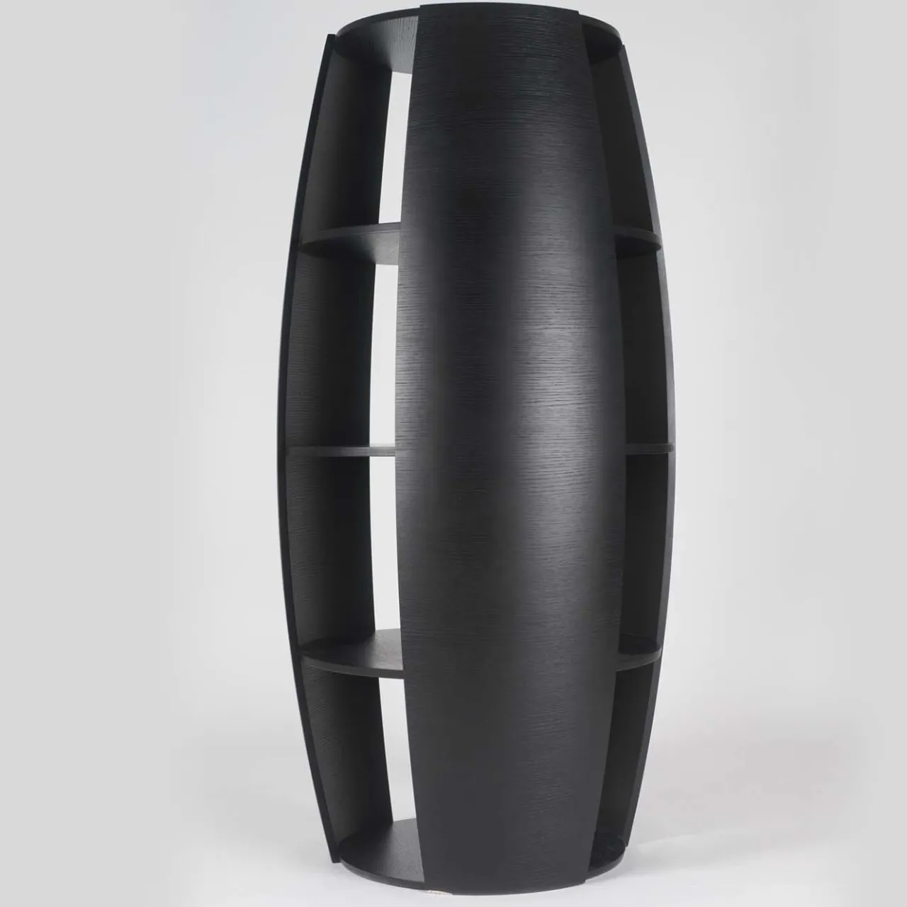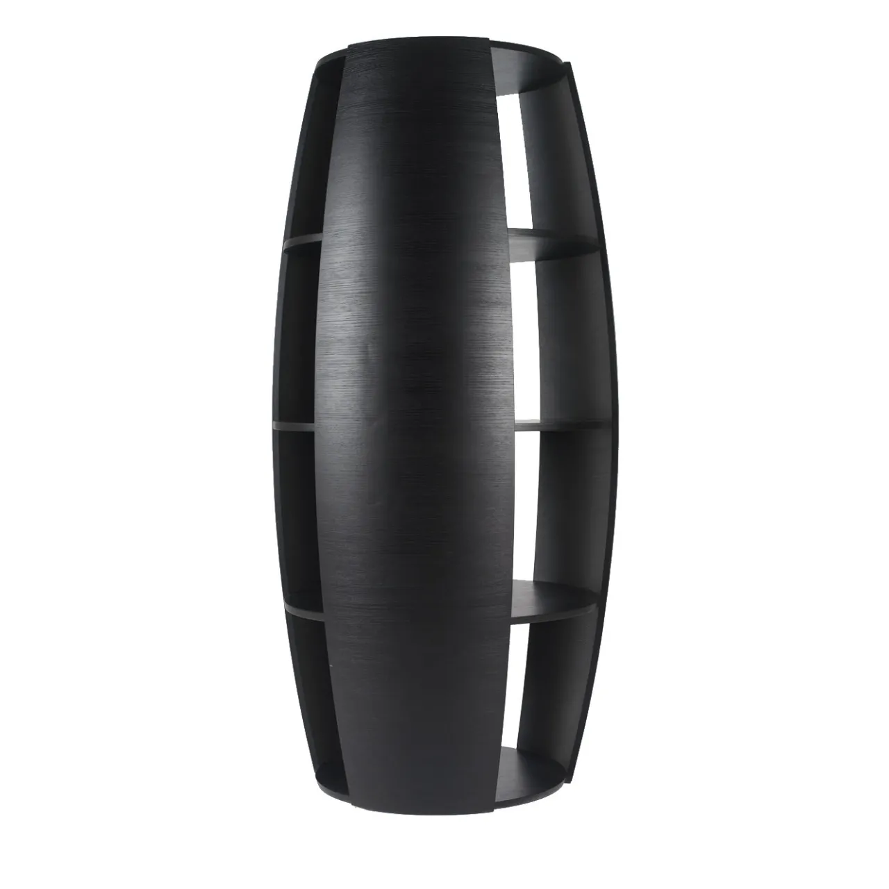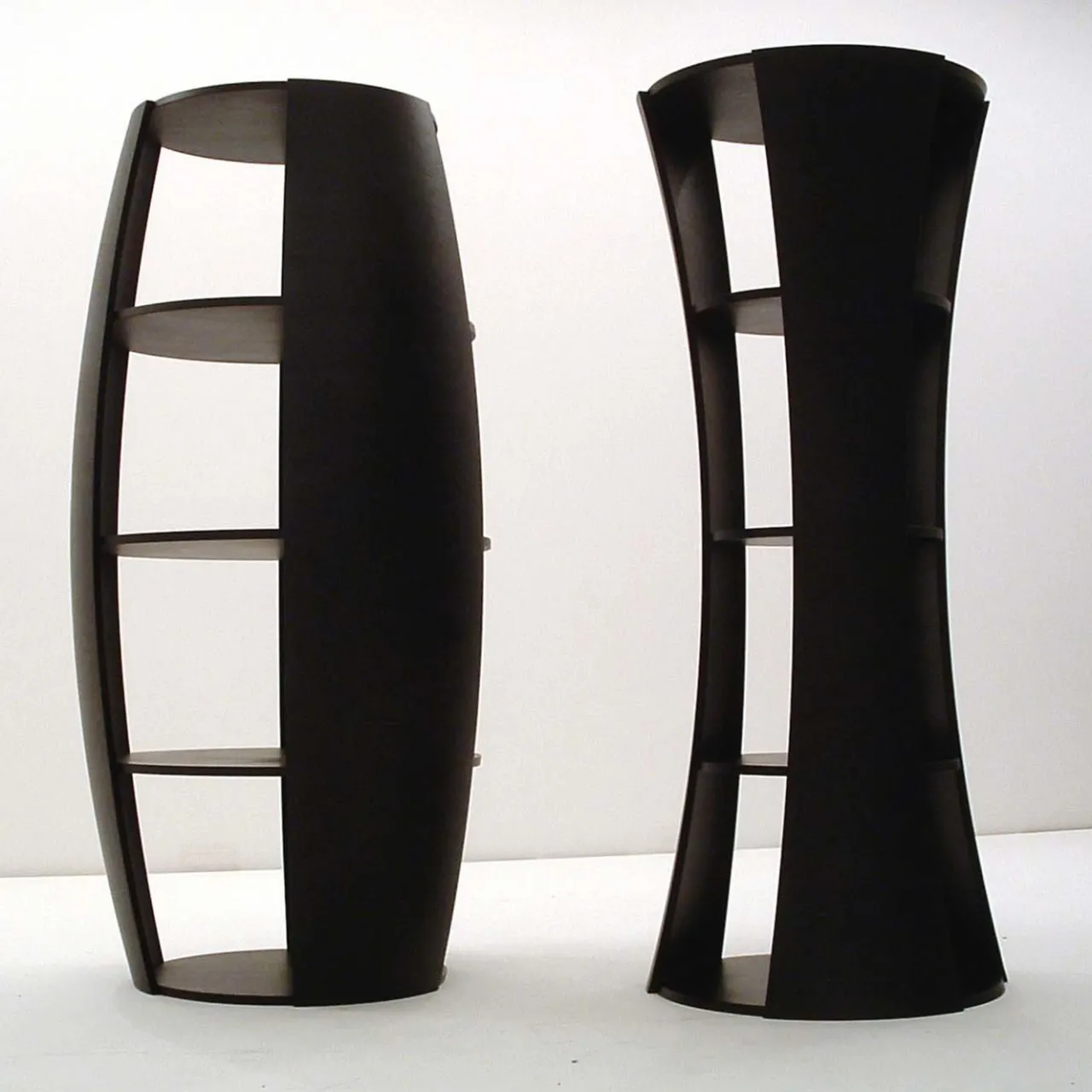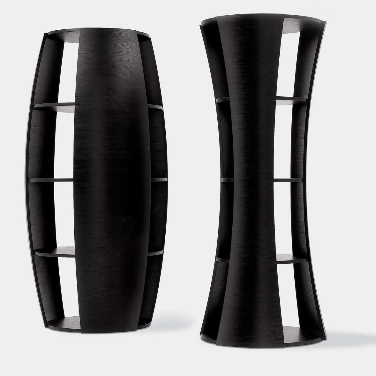 Questa libreria, disegnata da Carlo Ballabio, è caratterizzata da una forma unica che si adatta a un ambiente moderno e si fa notare in un ambiente classico. La sua forma sinuosa e curva è dovuta al legno multistrato ultra-flessibile utilizzato per la sua realizzazione. Completo di tre ripiani interni, questo pezzo offre un ampio spazio di archiviazione e può essere abbinato alla libreria Uno per creare un effetto dinamico.