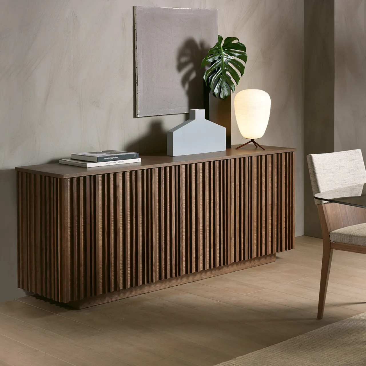 La madia in frassino Line, progettata da Giuliano Cappelletti, presenta un esterno strutturato con listelli verticali che creano un profilo moderno e testurizzato. Include un telaio in frassino impiallacciato e massiccio con un ripiano impiallacciato e mensole interne in vetro naturale per uno stoccaggio versatile. Disponibile in finiture come wengé, noce, tabacco, moka e lacca a poro aperto, il sideboard di dimensioni medie misura 183 cm di larghezza nella finitura in frassino noce mostrata. Contatta il Concierge per ulteriori informazioni.