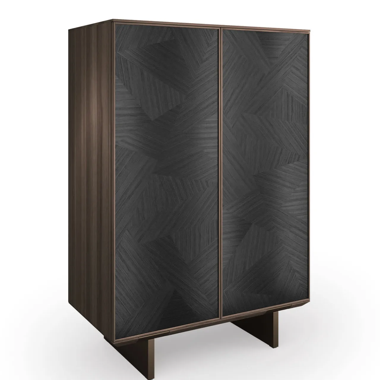 La Madia Solferino, con anta ad intarsio nero antracite, è un’icona di design audace. Il pannello centrale con intarsi crea un punto focale di grande impatto, esaltato dalla struttura in noce canaletto brunito. L’illuminazione a LED interna valorizza i ripiani in alluminio e vetro, creando un’atmosfera suggestiva. Un mobile di carattere, perfetto per arredare con stile e personalità.