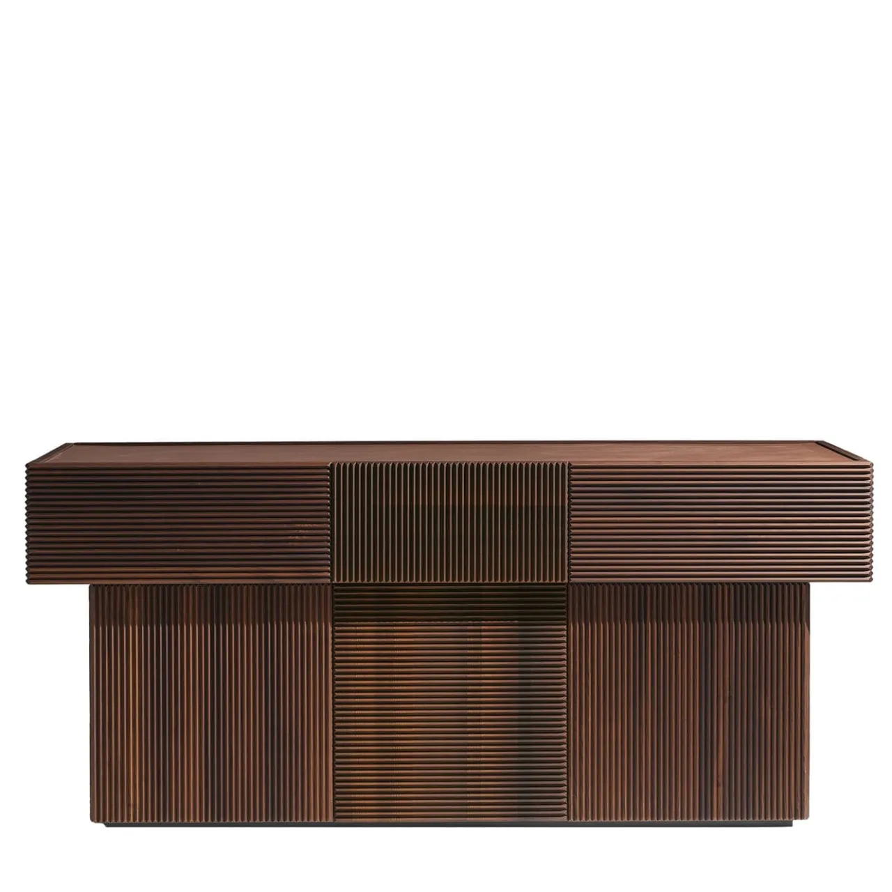 Scoprite la versatile credenza composta da due unità impilabili. L’unità superiore è dotata di 3 cassetti con guide morbide, mentre l’unità inferiore comprende 3 ante. Struttura interna in MDF verniciato nero, fianchi e ante in frassino termotrattato. La base è dotata di piedini regolabili per una perfetta stabilità. Ideale per spazi contemporanei. Per ulteriori informazioni, rivolgersi al Concierge.