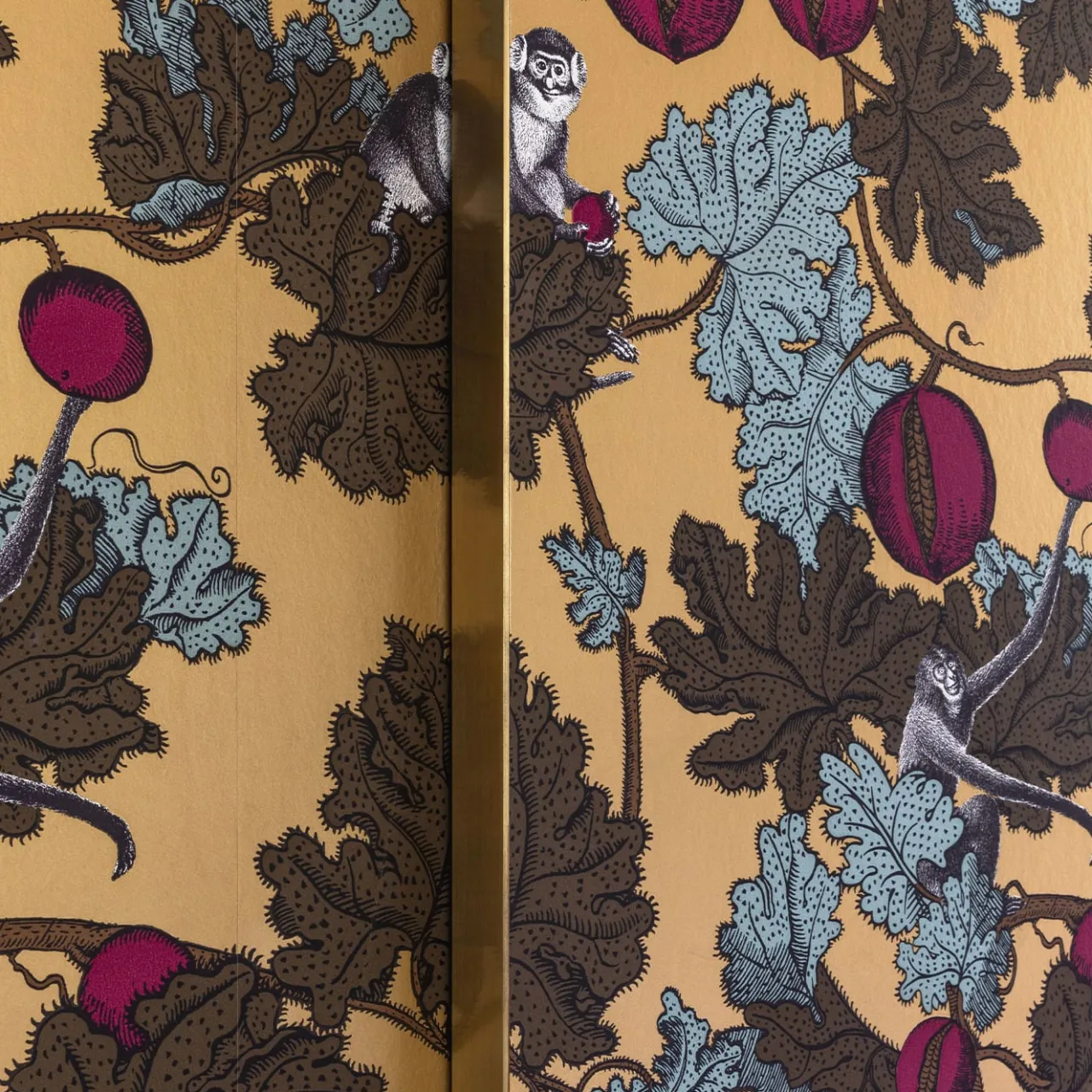 Questo superbo armadio si adatta a camere da letto eclettiche in spazi residenziali o alberghieri. La struttura presenta un telaio in MDF laccato opaco con una laccatura avion lungo l’interno e fuschia sui pannelli esterni. Le ante scorrevoli su guide silenziose sono rivestite con due tipi di carta da parati Artè che riprendono la laccatura interna, aggiungendo texture e drammaticità. Dettagli in ottone nelle fessure orizzontali completano l’opera. I rivestimenti personalizzati delle porte sono disponibili su richiesta al Concierge.