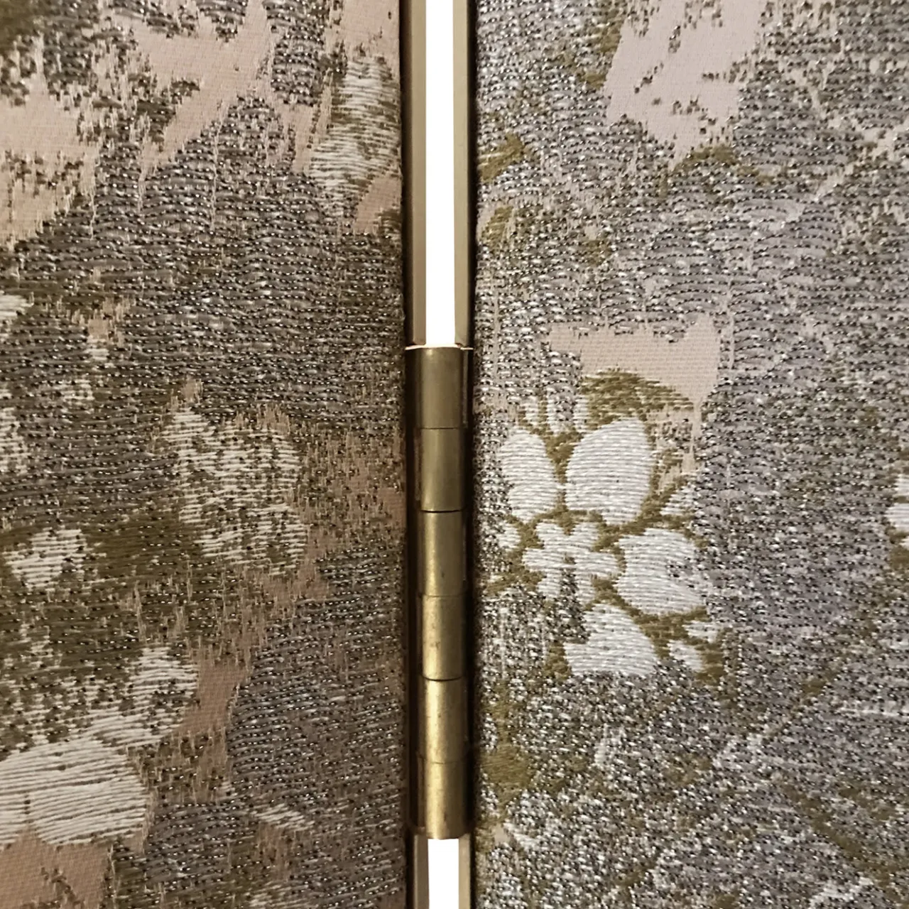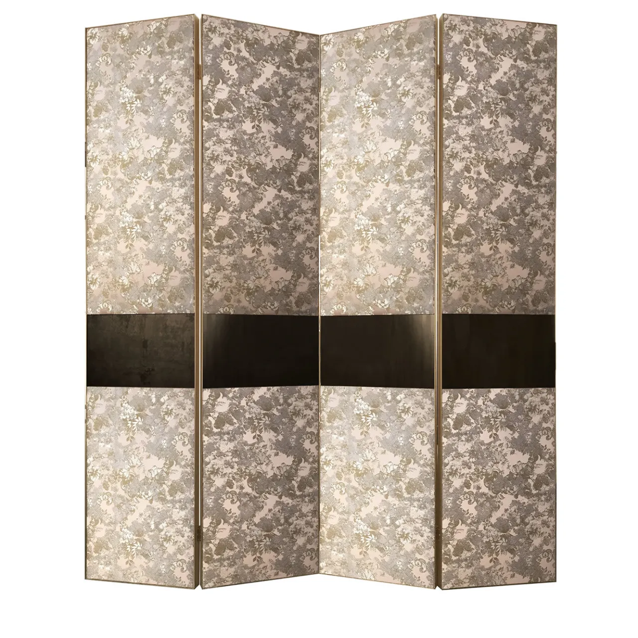 Parte di una selezione curata di pezzi creati in esclusiva per la mostra Stranger Pinks di Artemest al Fuorisalone per la Milano Design Week 2018, questo sofisticato divisorio creerà un’atmosfera intima in qualsiasi interno. È caratterizzato da tre pannelli incernierati rivestiti da un prezioso tessuto di broccato di seta con motivo floreale blush, accentuato da inserti di specchio color bronzo e argento che formano un’intrigante illusione ottica geometrica. Completato da una struttura e da una base in ottone con finitura spazzolata e dorata, questo pezzo sorprenderà per il suo calore e la sua innegabile eleganza.