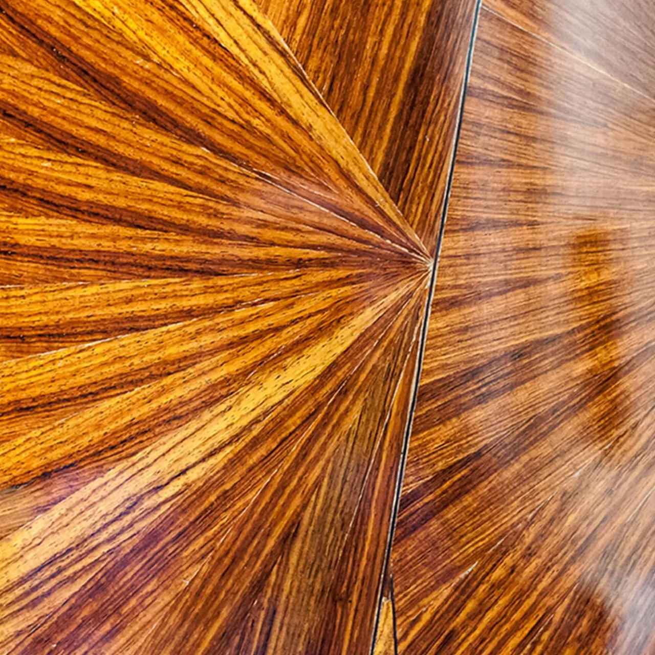 Frida è un omaggio alla forza creativa femminile rappresentata attraverso forme geometriche. Un luogo interiore selvaggio e incontaminato. Una giungla che prende una forma antropomorfa e si scompone in luci e ombre e che contiene in sé gli elementi chiave della natura che ha ispirato la sua creazione. Frida è un mobile bar in palissandro brasiliano ed ebano con dettagli in ottone con finitura oro rosa.