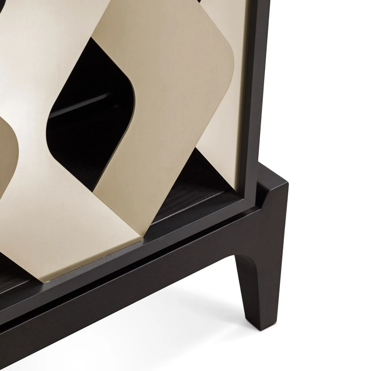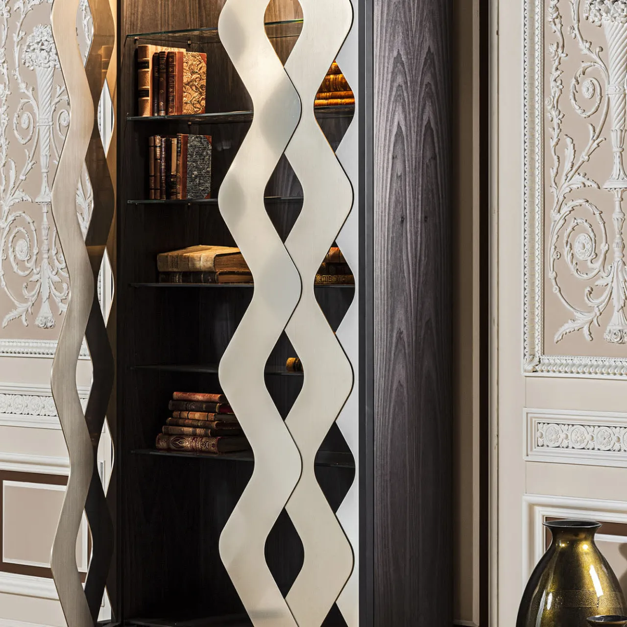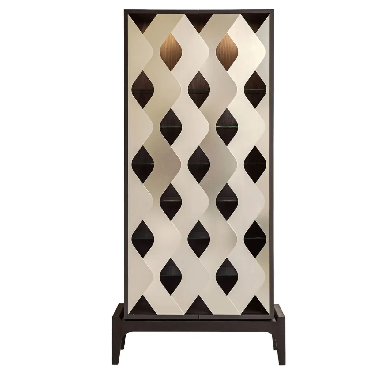 Mobile in legno Bolivar con base in rovere e ante a forma di onda in alluminio zincato.