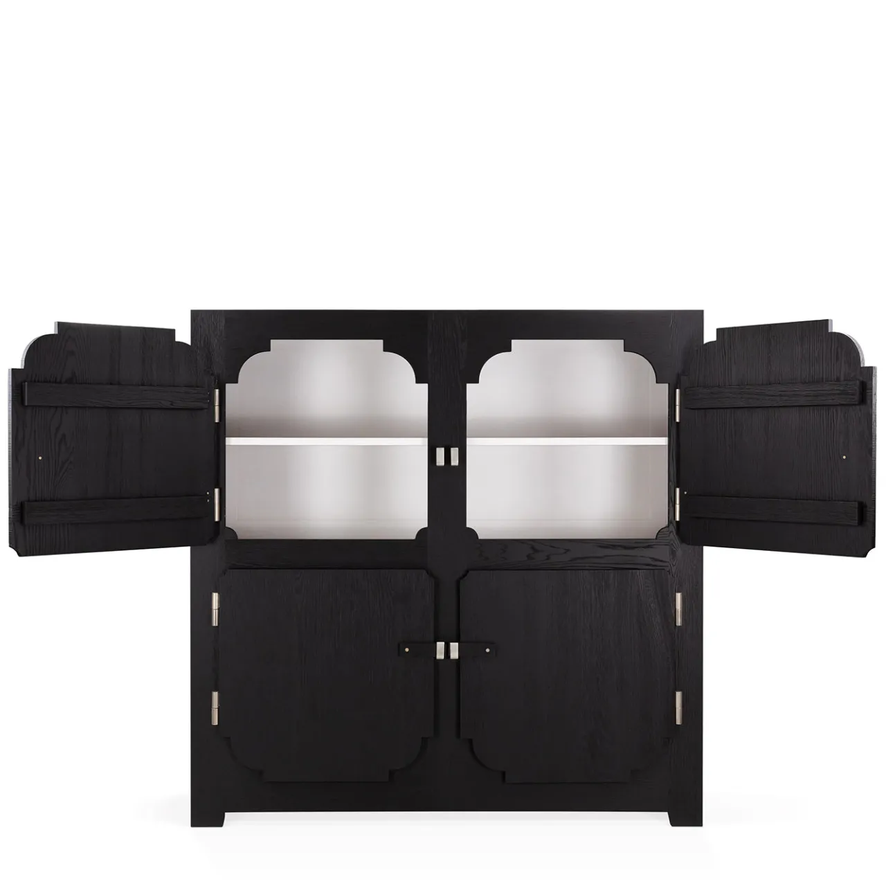 Il mobile in rovere nero Gipsy rielabora il design tradizionale attraverso audaci combinazioni di forma e finitura. Caratterizzato da quattro porte di forma unica e due scomparti a tutta lunghezza, abbina la venatura naturale del legno massello levigato con dettagli in acciaio effetto argento invecchiato. L’interno può includere un’illuminazione LED discreta per una funzionalità moderna, fondendo texture naturali con un artigianato contemporaneo in un mobile di medie dimensioni ideale per esigenze di stoccaggio distintive. Finiture e dimensioni personalizzate sono disponibili su richiesta; contattare il Concierge per ulteriori informazioni.