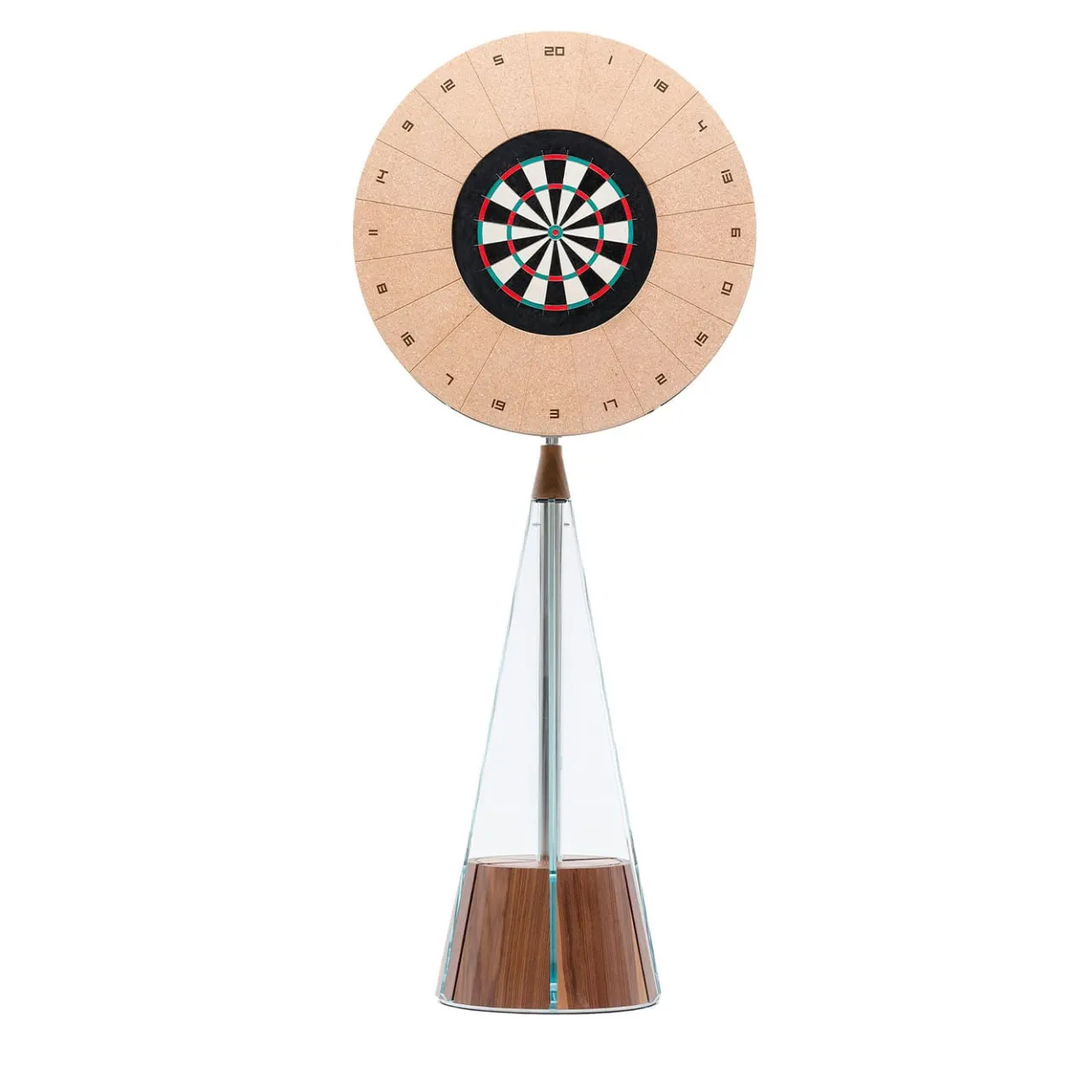 Gualtiero è un mobile da interno bifacciale che unisce funzionalità e stile. Il lato A, Cabinet of Curiosities, presenta uno specchio circolare che si apre tramite un pomello laterale, rivelando un vano di 50 cm con un ripiano profondo 15 cm, ideale come mobile bar. Il lato B, Freccette, è un bersaglio giocabile con struttura in sughero, vetro temperato e legno. Realizzato in legno Canaletto con dettagli in acciaio e vetro, è disponibile anche in frassino nero con finitura a poro aperto. Include un set di freccette, un laser magnetico e un kit di attrezzi Teckell. Per ulteriori informazioni, contattare il Concierge.