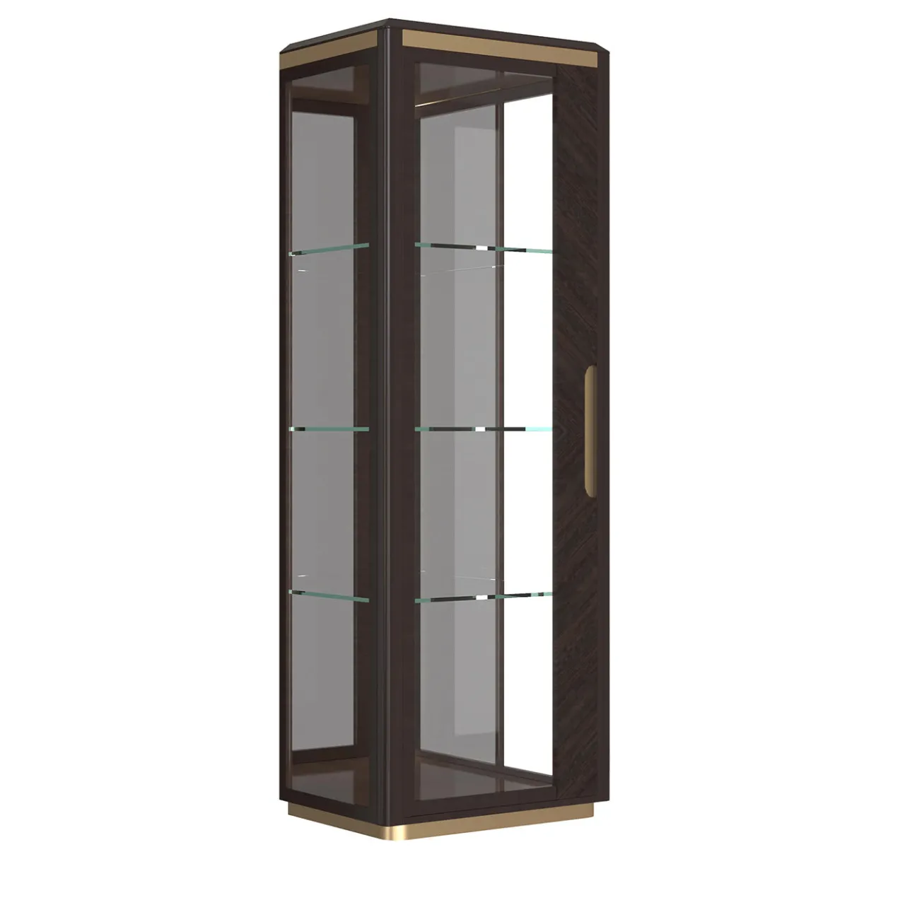 Una squisita combinazione di stili moderni e classici in un design elegante e sofisticato, questo mobile completerà senza sforzo qualsiasi interno di ispirazione tradizionale o moderna. Realizzato in legno impiallacciato di eucalipto scuro con finitura marrone espresso, presenta un’anta, pannelli laterali e ripiani in vetro. Per ulteriori dettagli sui materiali, consultare il Concierge.