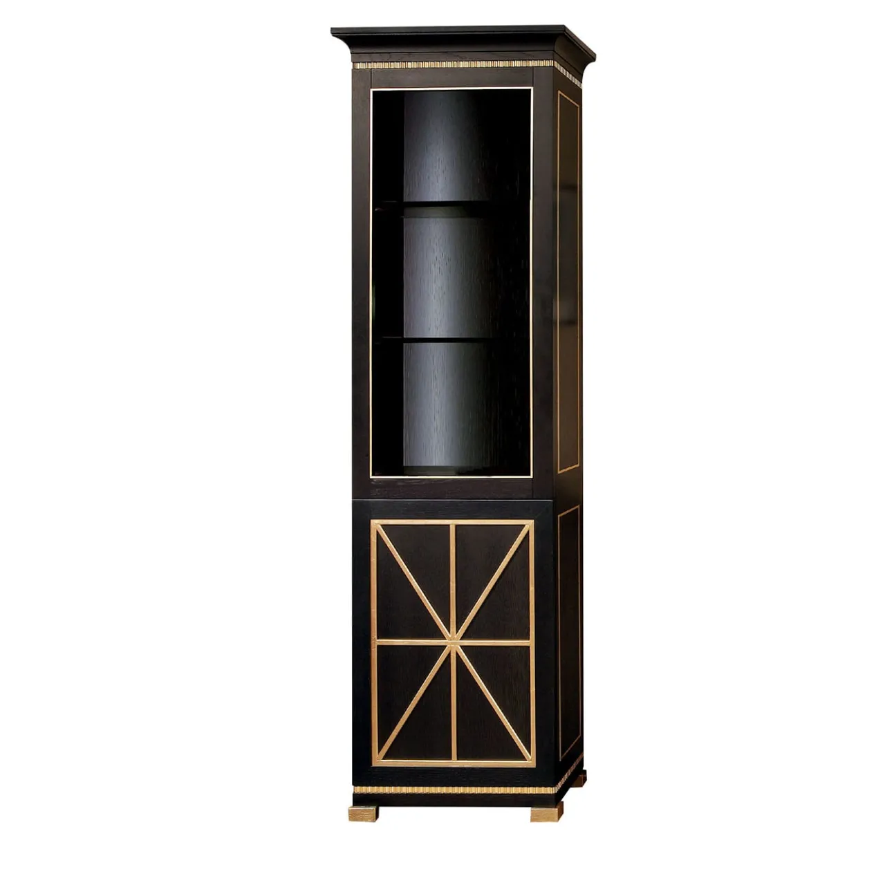 Con una silhouette robusta ed elegante che ben si adatta ad arredamenti esclusivi in stile classico, questa libreria è un pezzo pregiato destinato a resistere ai momenti familiari per molti anni a venire. La struttura lineare, che poggia su una base a piedini, è arricchita da preziosi dettagli in foglia d’oro e dotata di tre ripiani regolabili che si aggiungono a un pratico mobile contenitore chiuso da un’anta push-pull.