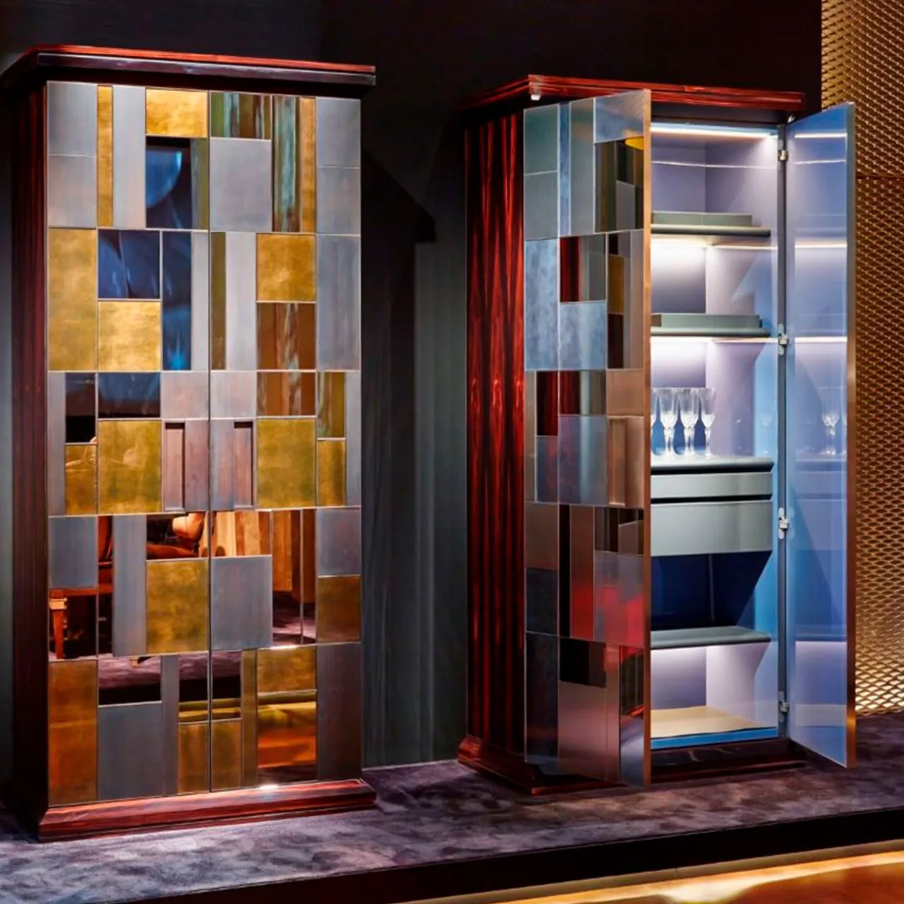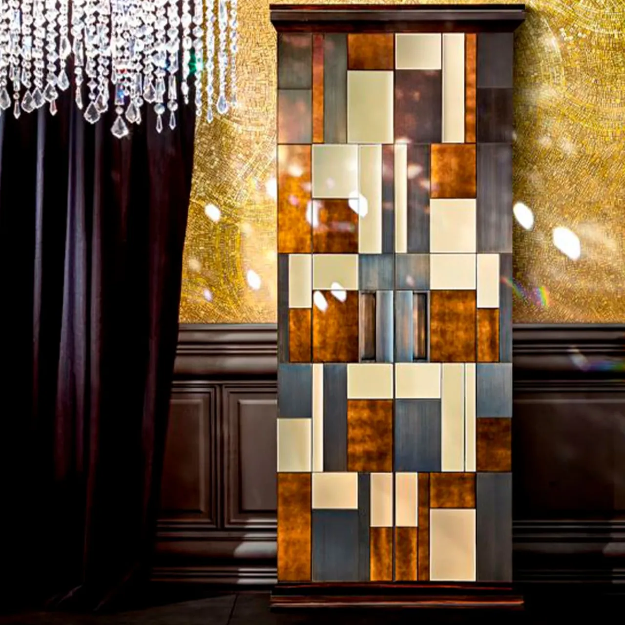 L’ispirazione viene da Mondrian, con le linee verticali e orizzontali e il suo modo di rappresentare l’equilibrio che qui si ritrova nelle forme e nelle geometrie portate in vita da materiali e processi unici.