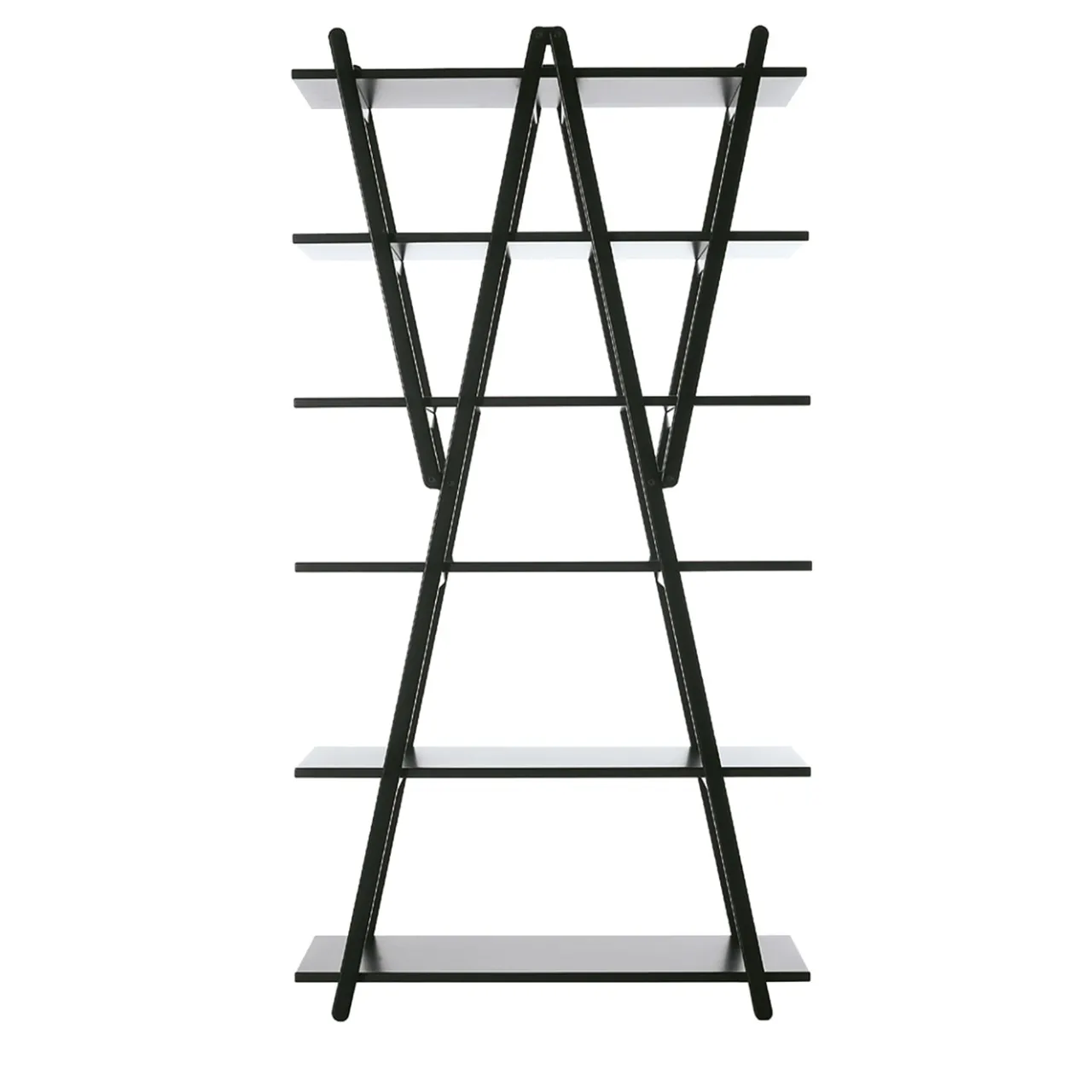 Nuvola Rossa – Libreria. Disegnata da Vico Magistretti, questa libreria dalle linee semplici e pulite nasce da un’analisi dettagliata del modello classico con supporti laterali e ripiani. Si tratta di un’icona del design, ma anche di una vera e propria invenzione costruttiva: i puntoni diagonali diventano la struttura portante e ospitano i ripiani, eliminando la necessità di supporti laterali. Ponendo l’accento sulle cerniere e sui sei ripiani, la struttura, ripiegabile, può essere utilizzata anche come divisorio. La sua estetica elegante e primaria, senza tempo e di facile lettura, ha reso Nuvola Rossa un’icona indiscussa del design fin dal 1977. È stata più volte imitata come esempio di funzione semplificata ottenuta attraverso un gioco di forme.