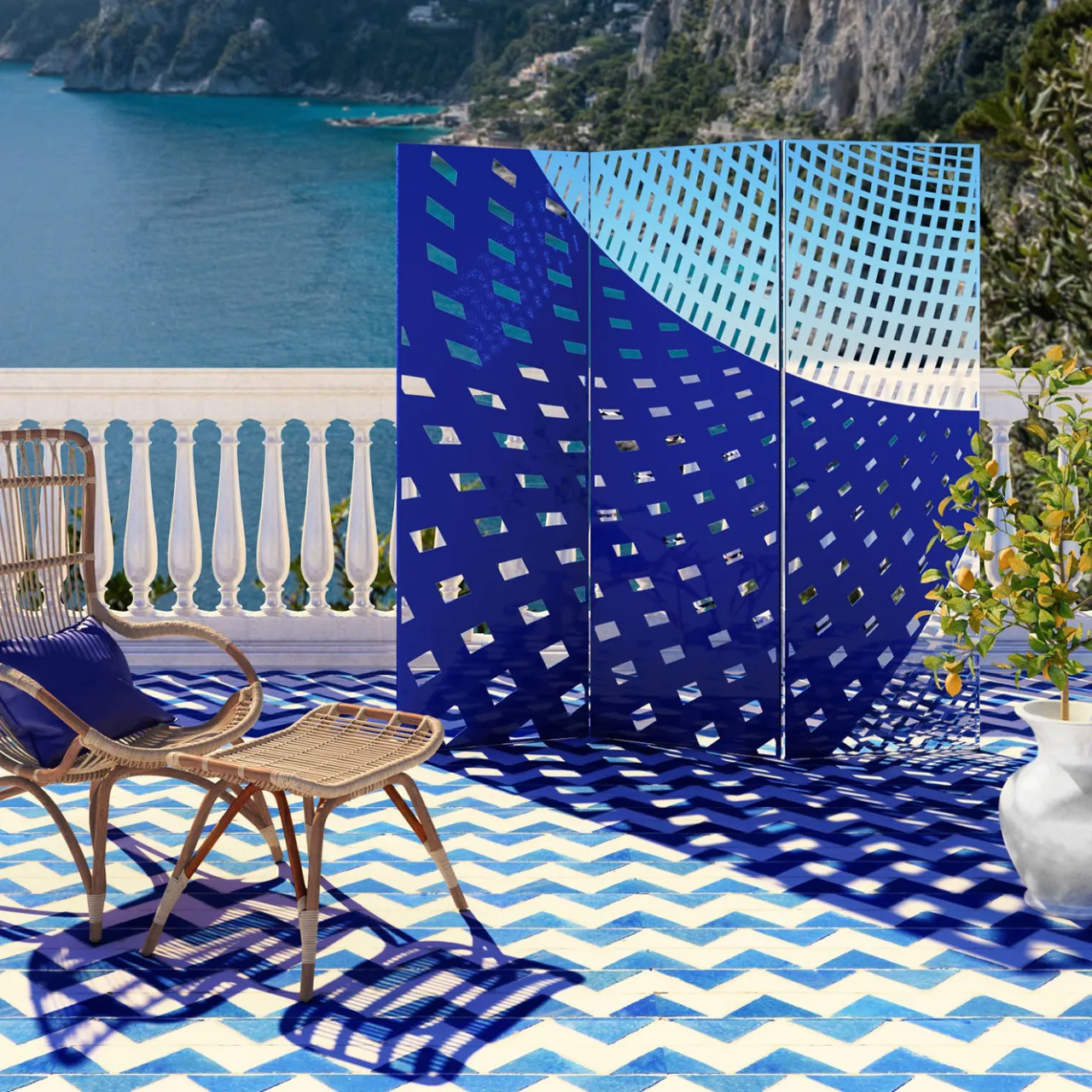 L’Otto separé è una tela traforata dalla texture irregolare e mutevole, una scultura cinetica, espressione della libertà di movimento. In questa versione da collezione realizzata per Nomad Capri 2023, la sinuosa onda blu di Prussia si tuffa nel mare dell’isola, in una magica fusione di arte e natura. La superficie specchiata ammicca ai raggi di luce, in un romantico gioco di contrasti. Quest’opera fa parte di una collezione limitata di soli 10 pezzi. Edizione limitata.