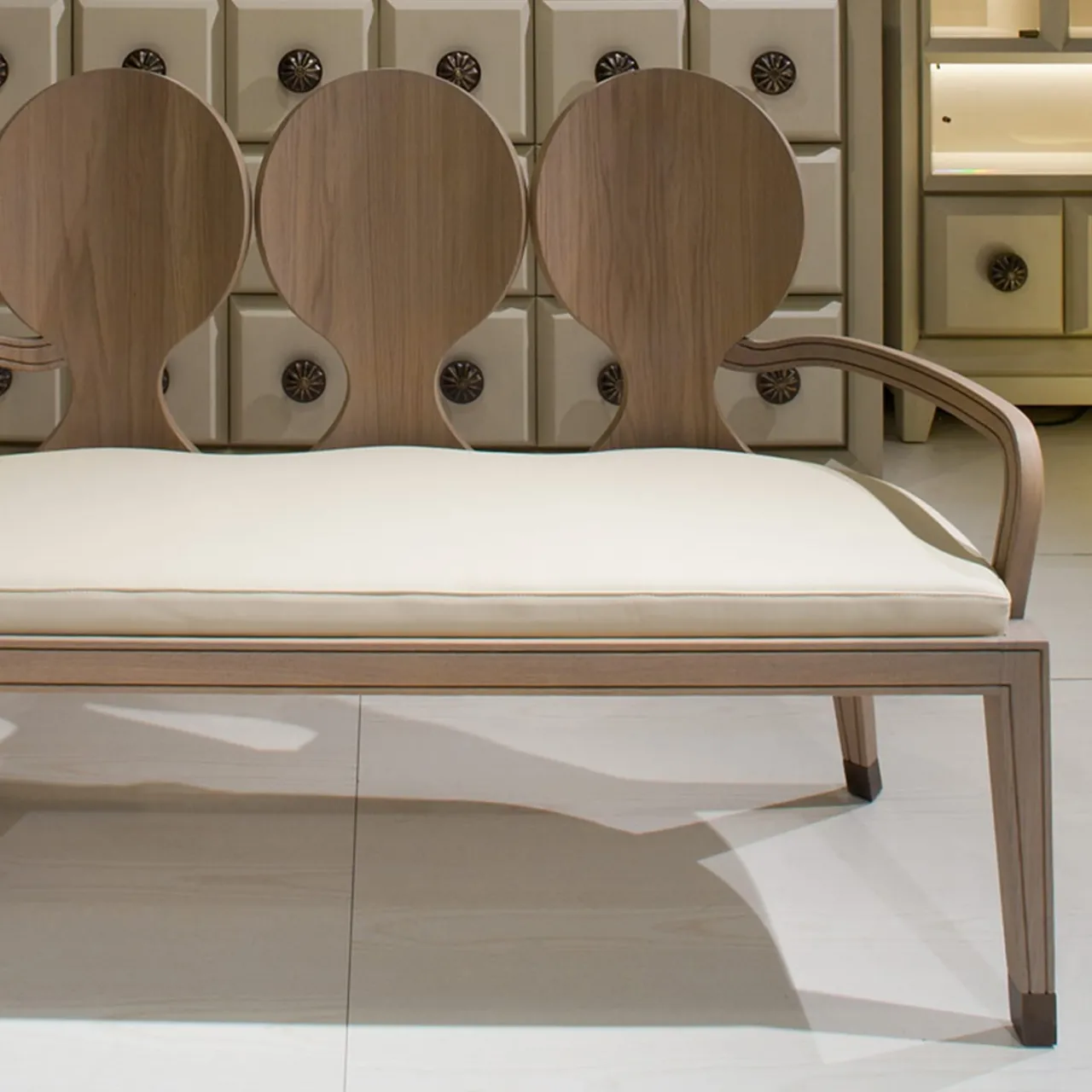 3 Scots Watch è una raffinata panca con struttura in legno in finitura rovere naturale progettata da Archer Humphryes Architects. Lo schienale in legno decorato incorpora tratti tipici dello stile neoclassico, mentre il rivestimento in pelle della seduta conferisce alla panca un aspetto contemporaneo.