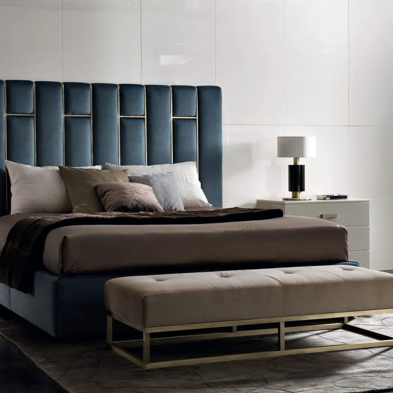 La panca da letto Milano è un accessorio elegante e funzionale per la vostra camera da letto in stile contemporaneo. Realizzata in compensato e rivestita in gomma, Air Soft e uno strato di piuma d’oca, la panca offre un comfort ottimale. La base in ottone ha una finitura in ottone brunito e il rivestimento è disponibile in tessuto o pelle. Nella foto: tessuto cammello chiaro di luna (CAT A). Su richiesta sono disponibili le certificazioni per il settore contract e commerciale.