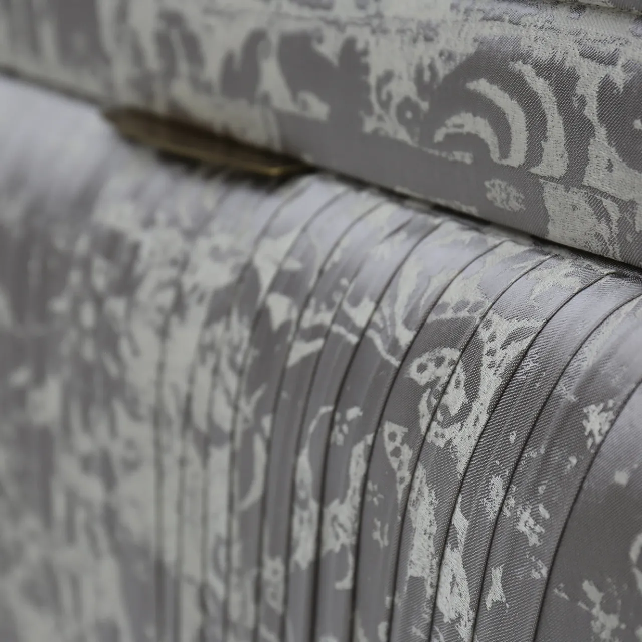 L’opulenza incontra la funzionalità in questa maestosa sedia di ispirazione classica. La panca da letto poggia su una struttura in legno interamente rivestita da un raffinato tessuto bianco con motivi a foglia che mescolano finiture lucide e opache. La panca si apre per rivelare un pratico spazio per riporre ogni tipo di gingillo, oggetto di valore o bene di prima necessità. Per ulteriori dettagli sui materiali, consultare il Concierge.
