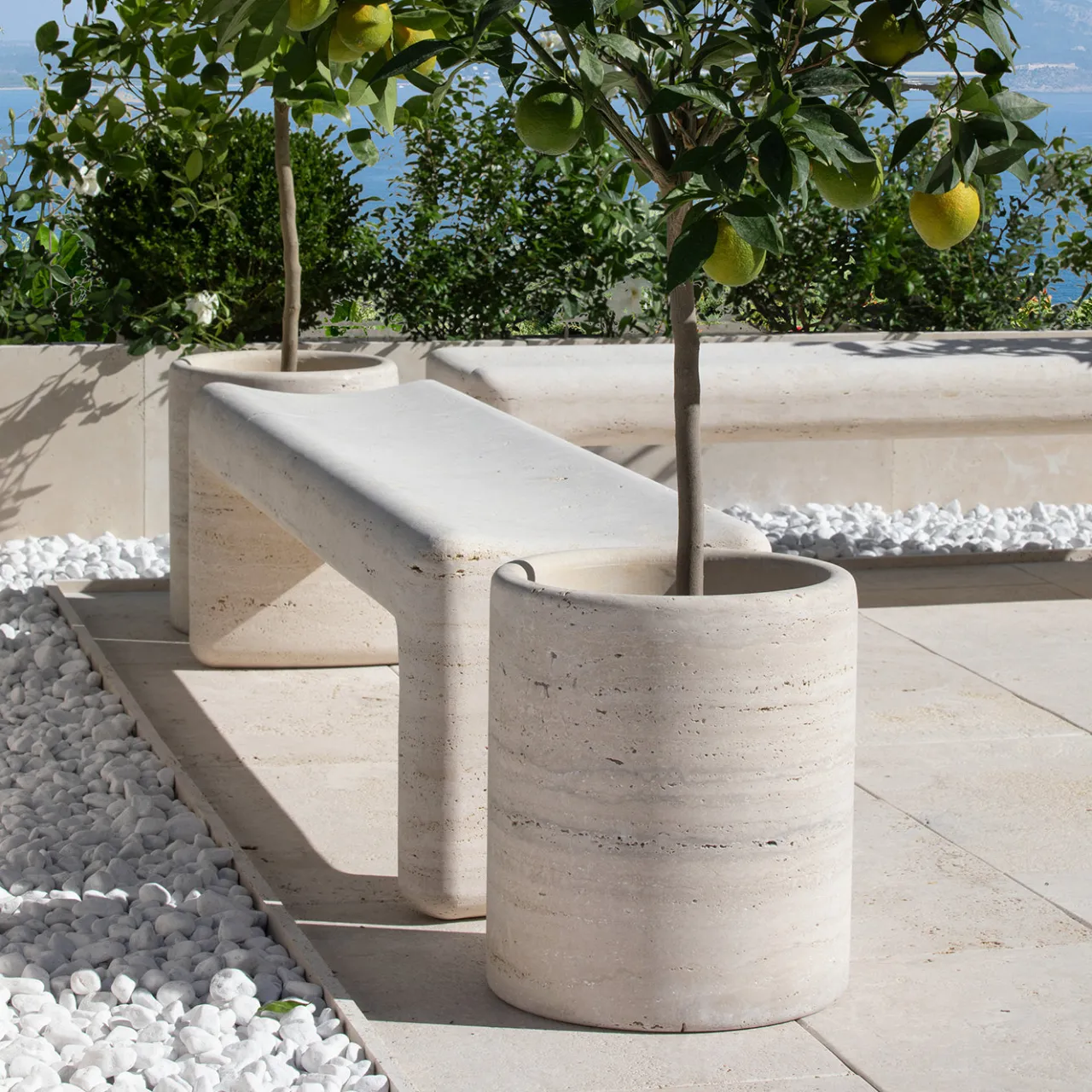 Panca esterna in pietra travertino beige Tinia*Veltha Outdoor Stone Design