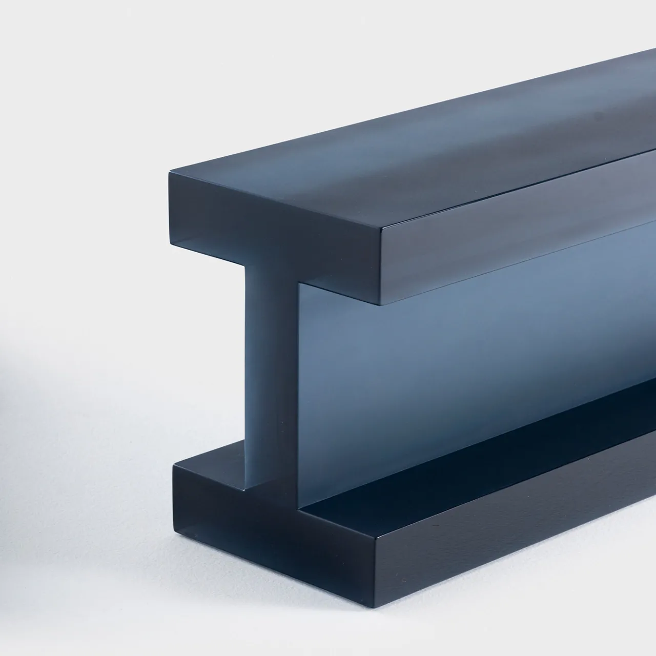 La panchina H si distingue per la sua struttura in resina blu profondo, con trasparenza ridotta che crea un’impressione di profondità infinita. Il contrasto tra superfici lucide e opache valorizza il profilo architettonico a forma di H, evocando riferimenti tradizionali nelle costruzioni, e introduce un interplay sofisticato tra materiali. Il pezzo esplora il rapporto tra luce, geometria e materia, offrendo un equilibrio coinvolgente tra solidità e leggerezza eterea, rivelando come la luce plasmi e animi la struttura stessa. Design di Laurids Gallée.