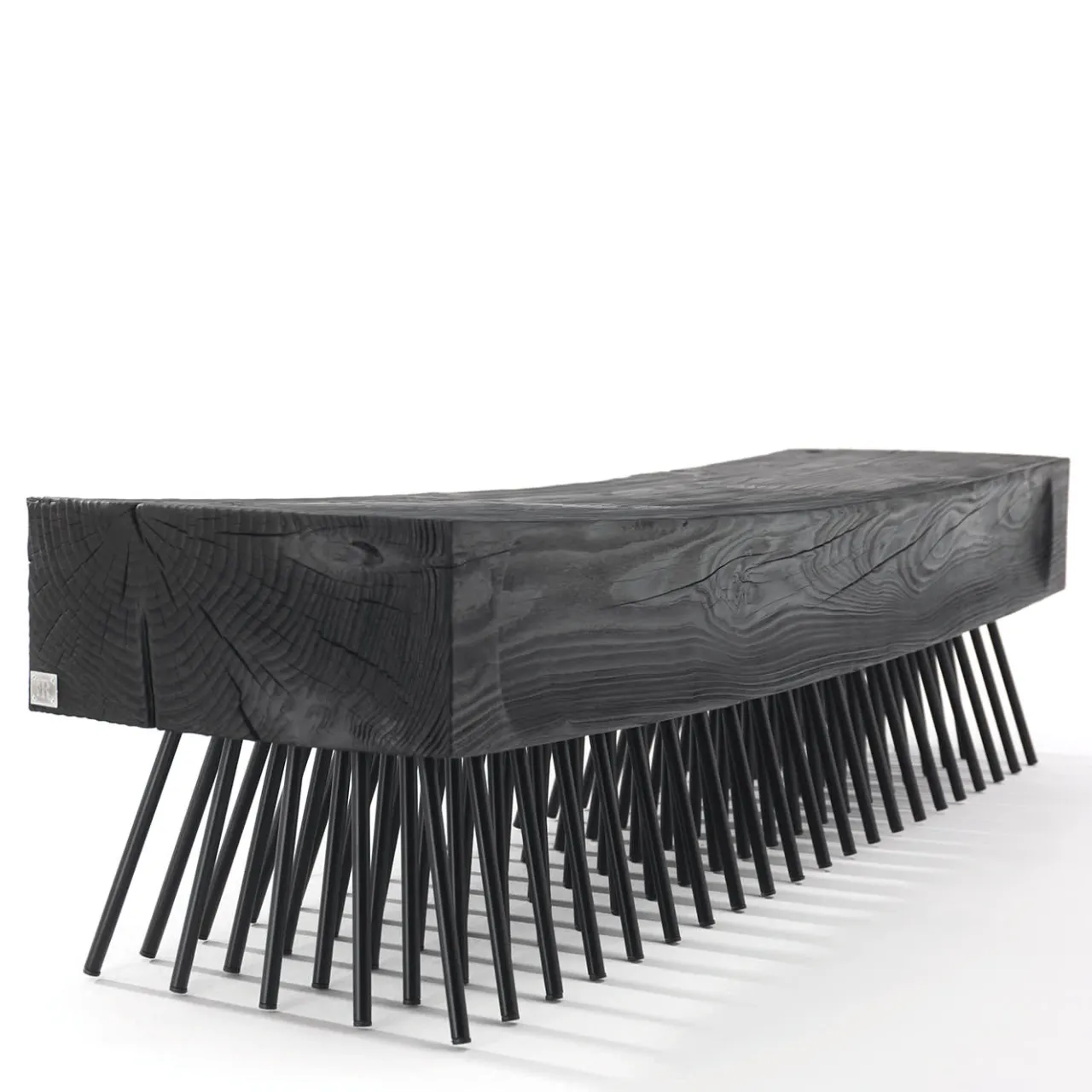 Questo iconico progetto di Fabio Lo Jacono prende in prestito il design delle spazzole per capelli trasformandolo in una panca eccentrica che non passerà di certo inosservata. La robusta seduta in cedro, color nero-vulcano, poggia su una serie organizzata di gambe in ferro grigio antracite che fungono da setole. Una versione con seduta in cedro con finitura naturale è disponibile nel catalogo Artemest.