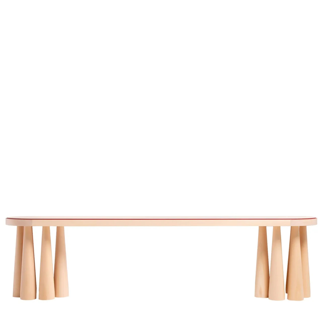 La collezione Bogdan nasce da un unico tronco di tiglio, generato da un elemento specifico. Un mobile monomaterico, caratterizzato da una distinta linea di colore che ne definisce il perimetro e la forma. I coni alla base, disposti in cerchio per creare un unico elemento visivo, sostengono il piano che si configura come parte unificante di ciò che lo solleva. Le coste fresate colorate impreziosiscono e completano il piano, creando, insieme alle gambe, giochi di chiaroscuro tutt’intorno.
