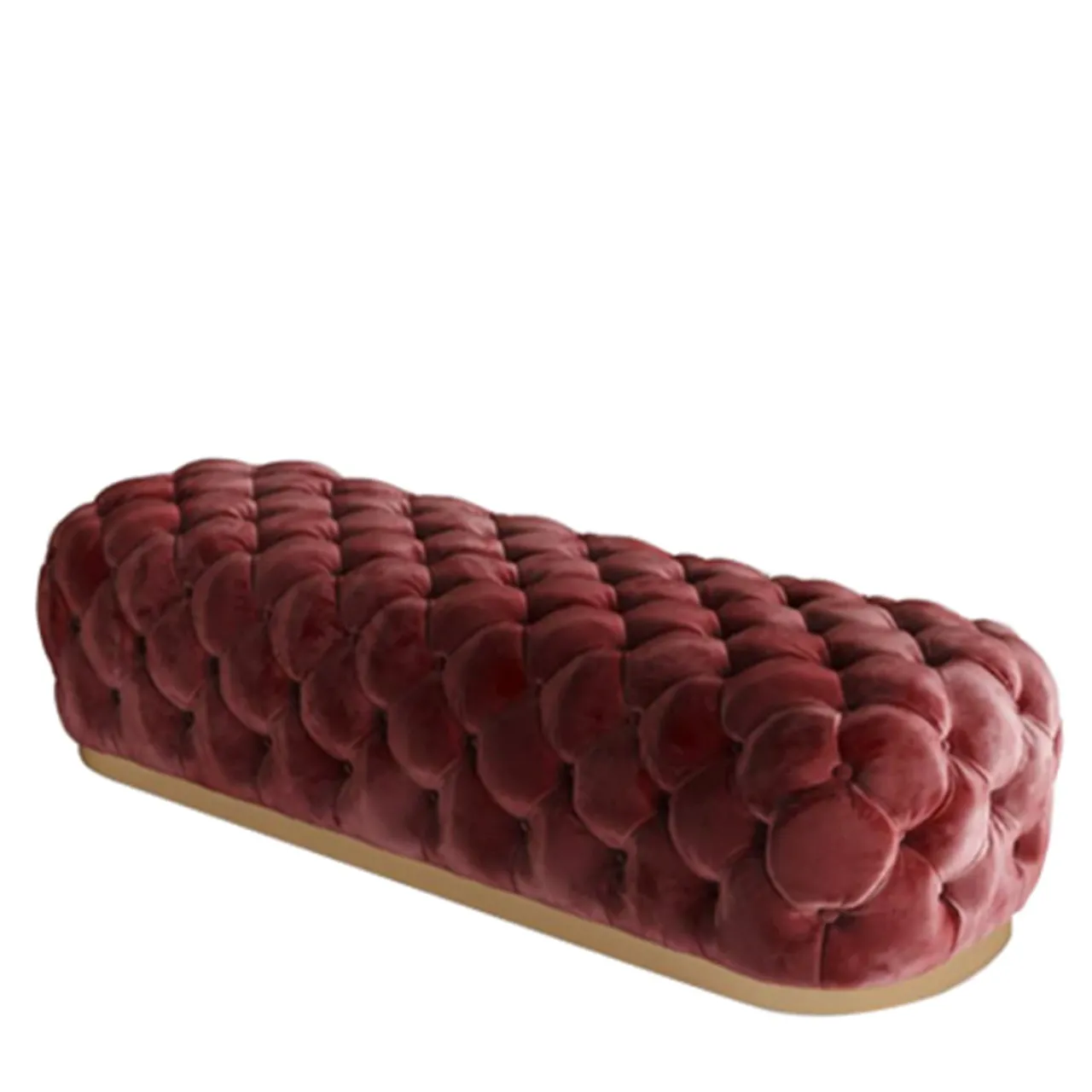 La semplicità della linea caratterizza questa panca dalla forma generosa. Il tradizionale bottone della trapuntatura capitonnè diventa scenografico grazie alla sua lavorazione senza stacchi tra seduta e fianchi. La base è laccata con la nuova finitura color rame.
