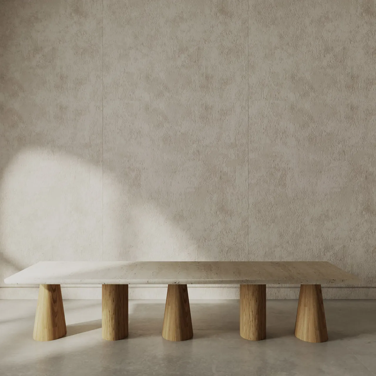 La panca Atrani è un sofisticato pezzo di design che sposa magnificamente la calda essenza del rovere massiccio con l’eleganza senza tempo del travertino naturale. Il suo stile minimalista e scultoreo la posiziona come elemento d’arredo esclusivo, ideale per ambienti moderni e raffinati. Ispirata all’incantevole borgo di Atrani sulla Costiera Amalfitana, questa panca presenta una robusta base in rovere massiccio, caratterizzata da equilibrate forme coniche che forniscono un supporto stabile e armonioso al piano in travertino. La panca Atrani è un simbolo di artigianalità e design duraturo, che fonde funzionalità e grazia estetica.