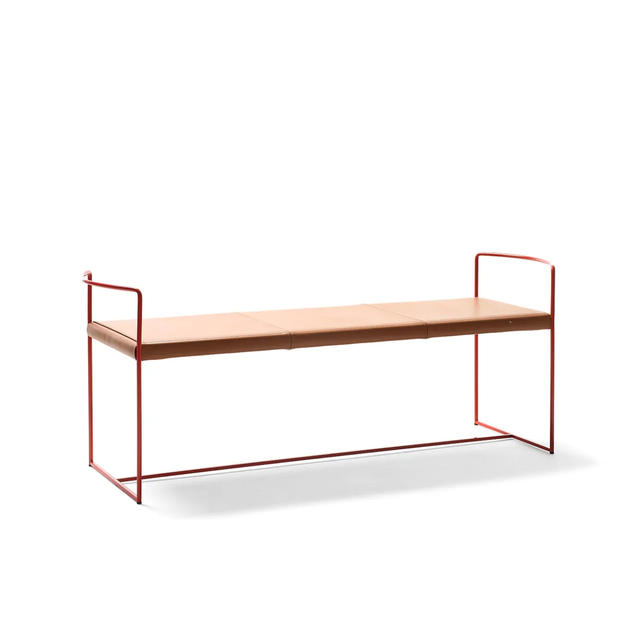 Come suggerisce il nome, questa graziosa panca si distingue per l’impareggiabile leggerezza della sua struttura minimalista in acciaio laccato rosso. La lussuosa pelle bovina marrone con cuciture a vista riveste la seduta, incorniciata da due delicati braccioli dal profilo curvo. Le cinghie nascoste garantiscono durata e flessibilità. Consultare il Concierge per le opzioni di personalizzazione disponibili.
