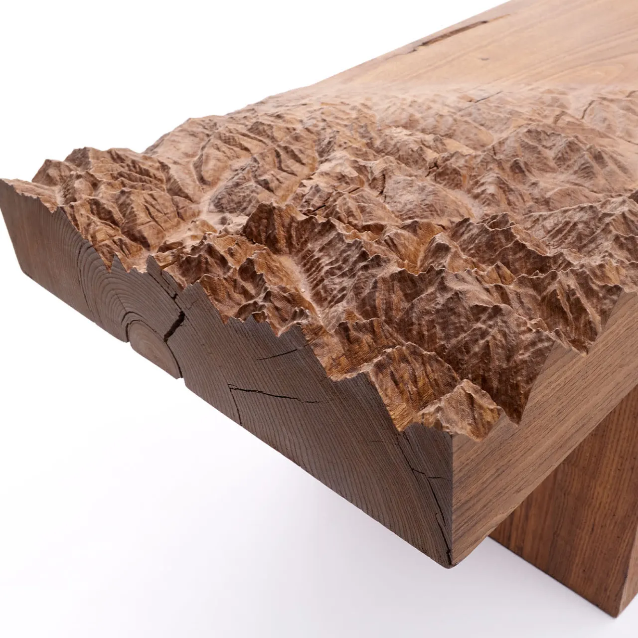 Belvedere è una panchina unica che trasforma il paesaggio circostante in un pezzo di design dinamico. Con una vista panoramica sulle colline vicine, il pendio della montagna è scolpito nella seduta, passando da piatto a tridimensionale, infondendo all’oggetto un senso di movimento. Realizzato in legno massiccio, rappresenta fedelmente una vera catena montuosa. Il cliente può personalizzare il soggetto della montagna, la scala topografica e le dimensioni della panca in base alle proprie preferenze.