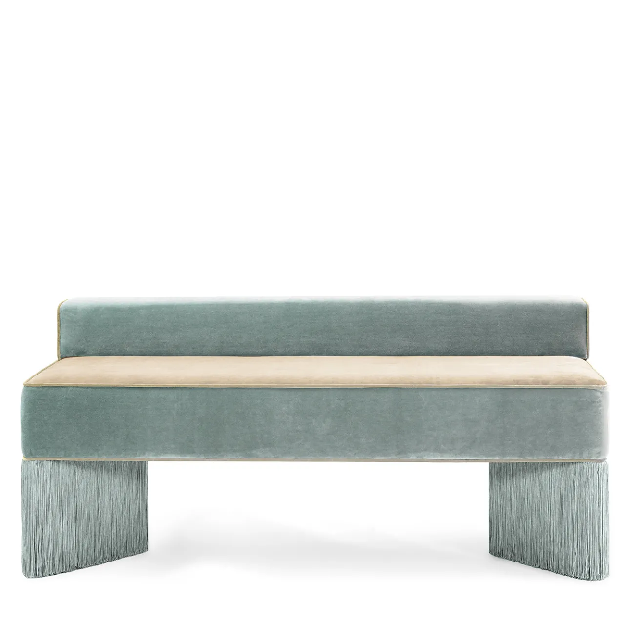 Panchina Tria in menta chiara e beige con frange*Lorenza Bozzoli Couture Clearance