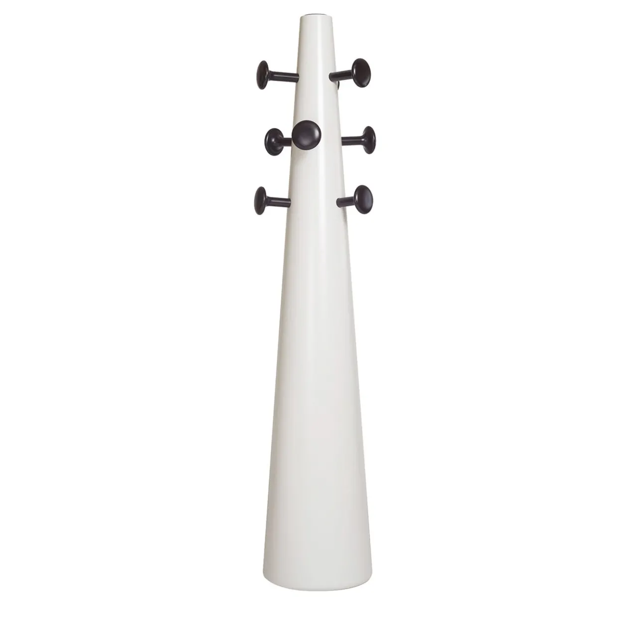 L’appendiabiti Particella mantiene l’accostamento di slancio e gravità della versione intarsiata, ma presenta un corpo in poliuretano laccato opaco in nuovi colori e pomelli in legno laccato nero opaco. Fa parte della collezione New Atomic Age disegnata da Elena Salmistraro. La designer si è ispirata al periodo storico compreso tra gli anni Quaranta e Sessanta. La collezione riflette simboli neo-tribali e post-atomici attraverso preziosi intarsi e innovativi intagli in resina.