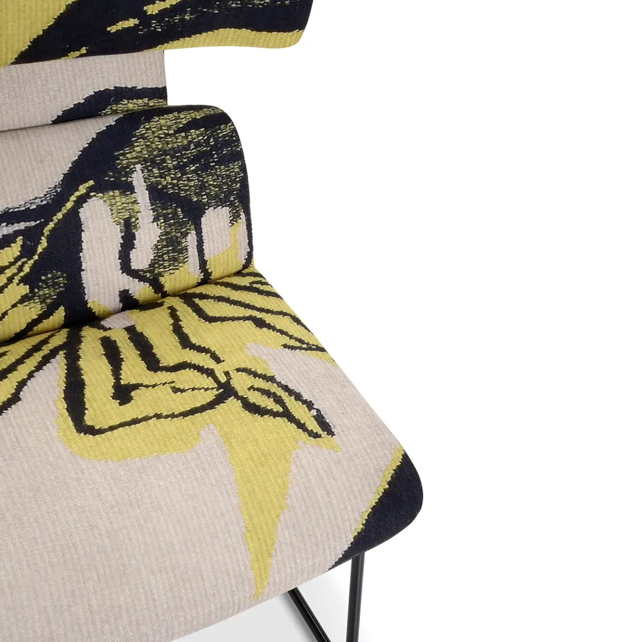 Questa squisita poltrona, disegnata in esclusiva per Edit Napoli 2024, è un pezzo unico che presenta i segni e i colori distintivi di un arazzo del maestro Remo Brindisi. La poltrona è realizzata con poliuretano espanso ad alta densità e deformabile e uno strato di fibra Dacron® da 100 g, che ricopre una struttura in legno di abete multistrato. La base è costituita da doghe di metallo verniciato, che combinano materiali innovativi e patrimonio artistico per creare un pezzo funzionale e artistico.