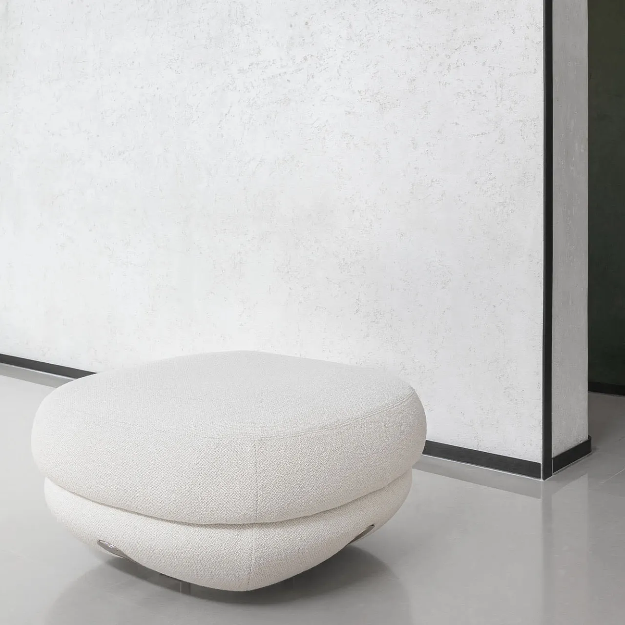 Semplicità, luminosità e comfort sono sintetizzati in questo elegante pouf della serie Harold. L’imbottitura in poliuretano a densità differenziata è abbinata a strati di schiuma acrilica e memory foam per un comfort impeccabile. Non rimovibile, il rivestimento in tessuto total white è interrotto solo da piedini in acciaio arrotondati. È disponibile anche una variante grande per raffinate composizioni coordinate.